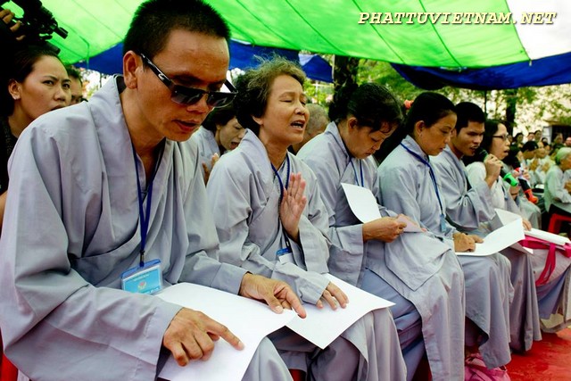 Họ nối tay vào vai nhau từng bước chân về dự lễ từ sáng sớm để niệm Phật, nghe pháp và một số vị có thể tụng Kinh bằng bản chữ nổi. Các học sinh mù cũng có thể đánh đàn và cất tiếng hát làm xúc động lòng người.