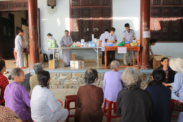ĐĐ. Thích Thông Đạo – UV HĐTS, Phó ban kiêm Chánh thư ký BTS GHPGVN Tp Đà Nẵng, Trú trì chùa Bà Đa cho biết: với tinh thần Từ Bi – Ban vui cứu khổ của đạo Phật, chùa Bà Đa luôn hướng đến những công tác từ thiện thiết thực hỗ trợ các hoàn cảnh khó khăn. Nhân dịp Đại lễ Phật đản PL.2561 – DL.2017, chùa Bà Đa và Phòng khám từ thiện Vu Lan tổ chức khám bệnh – phát thuốc miễn phí cho người nghèo.