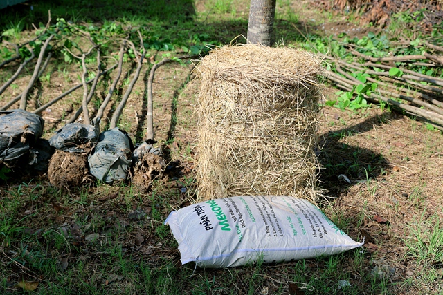 Kỷ thuật trồng cây được một Phật tử có kinh nghiệm chia sẻ trước khi đặt cây trồng (lót đất sạch, đặt bầu cây vào vị trí, 3 phần sâu, 7 phần trên cạn, lấp đất vung, cột 3 cây chồng chéo để giữ vị trí, tưới nước, lấp rơm giữ ẩm cho rễ).
