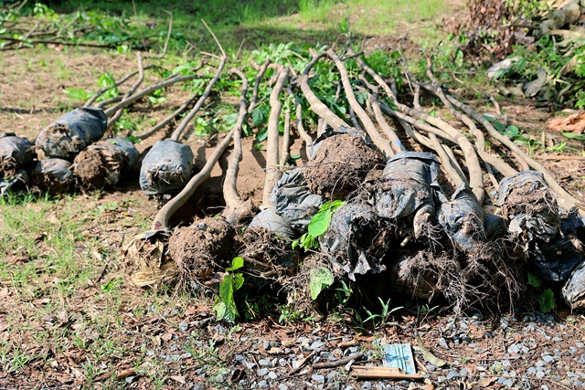 Tiếp đến, từng nhóm chia nhau vận chuyển cây đến từng vị trí trồng đã được chính quyền và người dân địa phương đào lỗ sẵn.