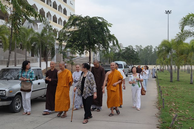 Sau một tuần hành hương Miến Điện, Ngày 17/12/2013 đoàn trở lại Thái Lan để viếng thăm, cúng dường tại trường Đại học Mahachulalongkorn thủ đô Bangkok và đã có cuộc gặp mặt thú vị với 30 Tăng-Ni Việt Nam du học tại đây.
