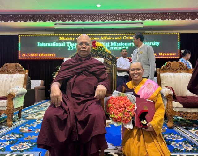 PTVN – Tại buổi lễ tốt nghiệp niên khóa 2024–2025 được tổ chức chiều 21/7 tại International Theravāda Buddhist Missionary University (ITBMU) – Myanmar, sư cô Thích Nữ Như Huệ (thế danh Nguyễn Ánh Tuyết), thuộc Giáo đoàn IV, phân đoàn I hệ phái Khất sĩ, hiện tu học tại Tịnh xá Ngọc Hương (Biên Hòa, Đồng Nai), đã được vinh danh là thủ khoa tốt nghiệp cử nhân Phật học (Gold Medalist).