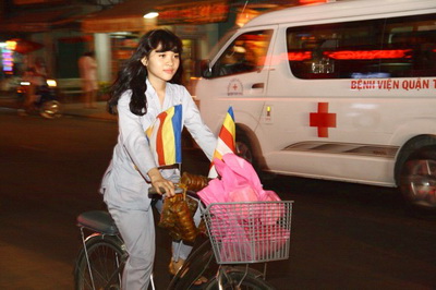 Dựa trên hình ảnh, trong ánh đèn đỏ quạch dưới màn đêm cuối tháng chạp. Ánh sáng đèn đô thị dường như không đủ chiếu sáng cho dòng người tấp nập đi đón giao thừa. Đoàn người của Nụ cười Di Lặc đã tạm gác những phần việc bận rộn cuối năm của gia đình và cá nhân để kịp mang những món quà bất ngờ đến tận tay người cơ nhỡ chưa có cơm ăn no, chưa có chỗ ấm để đặt lưng dưới trời đêm gió lạnh.