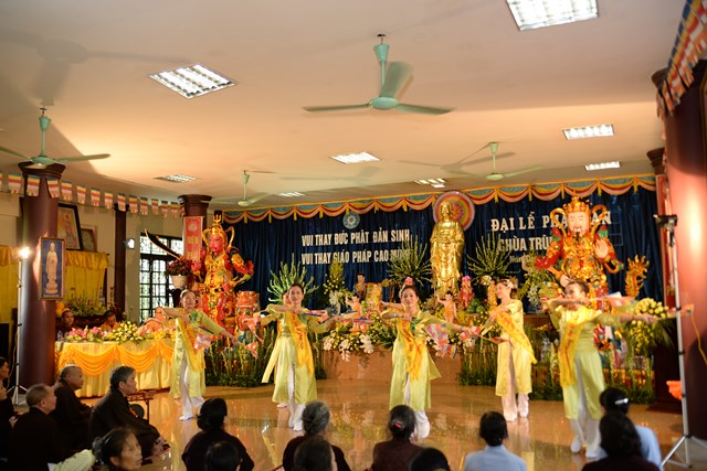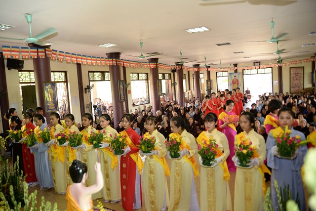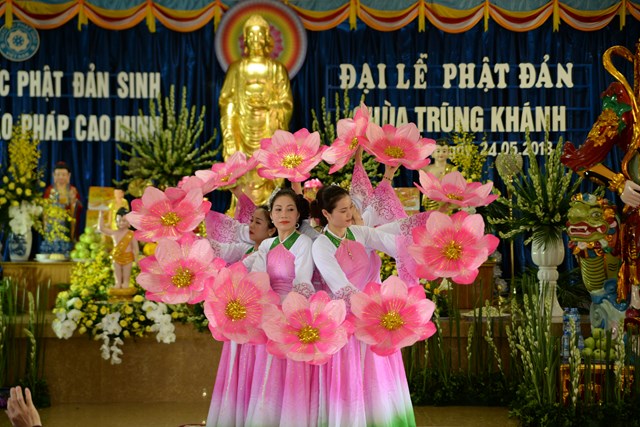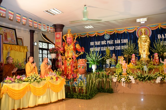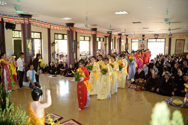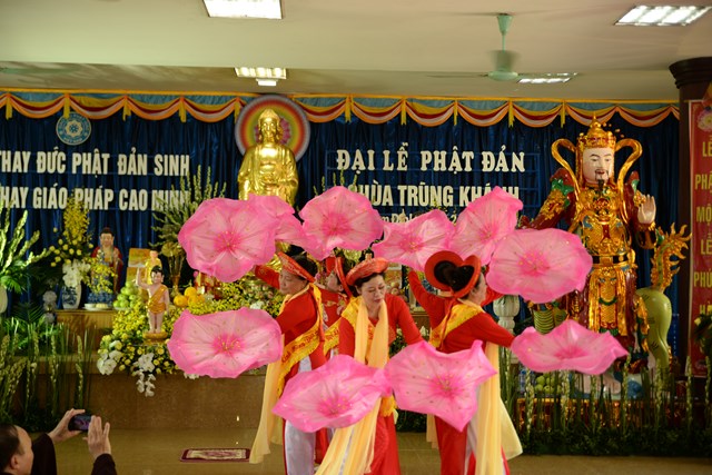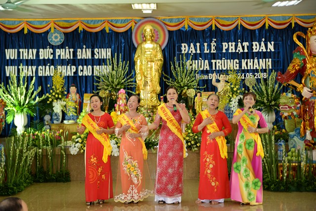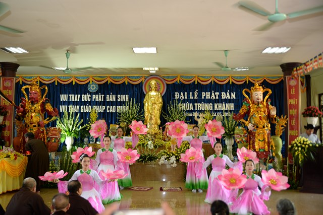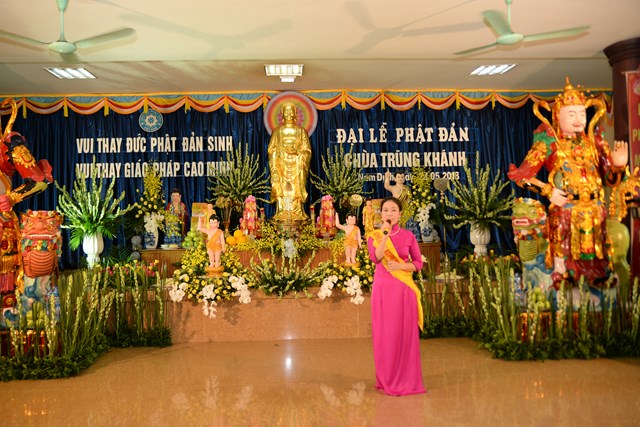 Nhân dịp này chư tôn đức tăng ni, các cấp chính quyền địa phương cùng hàng trăm Phật tử có mặt trong đạo tràng đã cử hành nghi lễ niêm hương, bạch Phật, cầu nguyện thế giới hòa bình, chúng sinh an lạc, cầu nguyện cho Phật Pháp được trường tồn, ngày càng hưng thịnh và lễ tắm Phật theo nghi thức truyền thống. Ngoài ra, cùng ngày, chư tăng trong chốn trụ xứ và các Phật tử còn tổ chức hoạt động phóng sinh, cúng thí thực và an vị 2 pho tượng Văn Thù Sư Lợi Bồ Tát tại chính điện chùa Trùng Khánh kính dâng lên đấng từ phụ Bản Sư Thích Ca Mâu Ni Phật nhân kỷ niệm 2642 năm ngày sinh của Ngài.