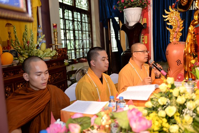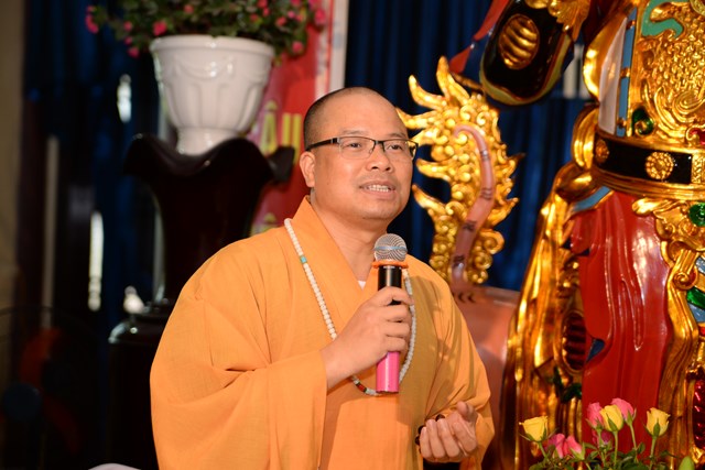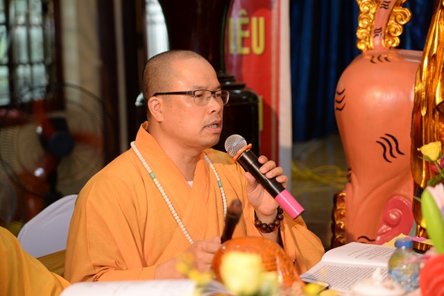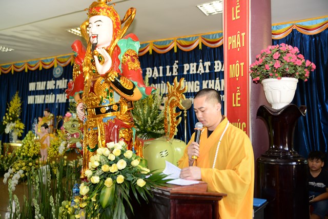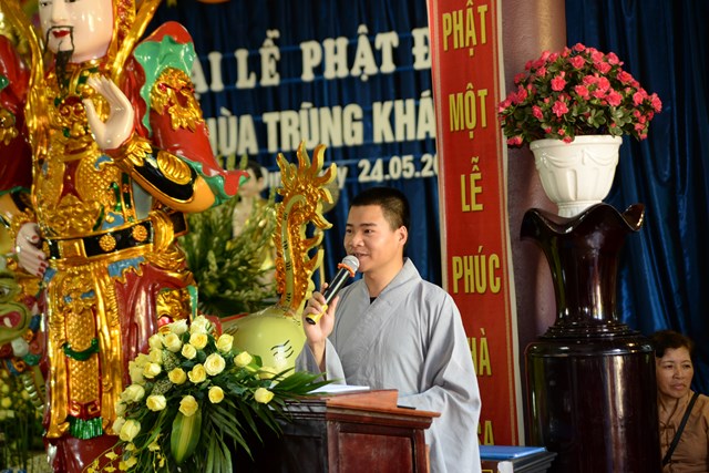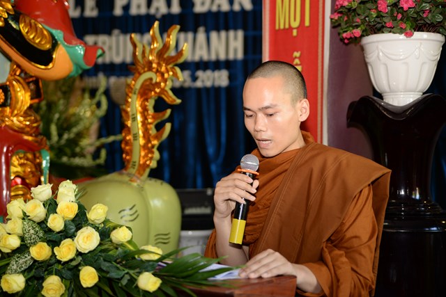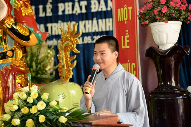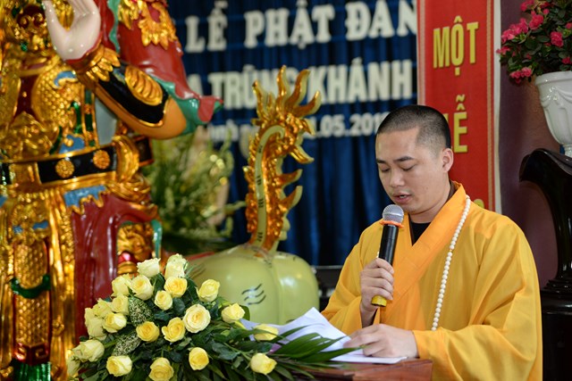 Đại đức Thích Thanh Nghĩa tuyên đọc Thông điệp Phật đản PL. 2562 của Đức Pháp Chủ GHPGVN
