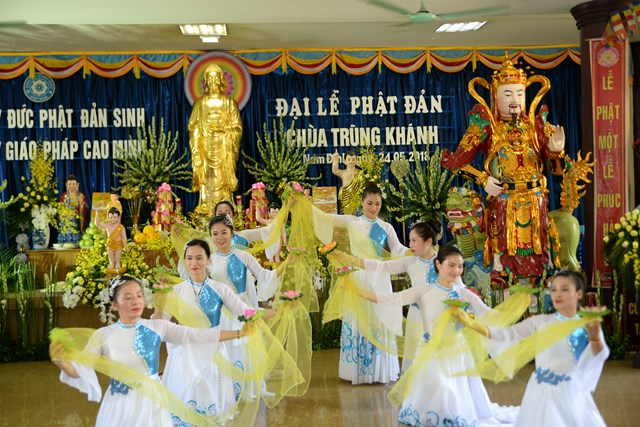 Dịp này, hàng trăm Phật tử của thành phố Nam Định và các Phật tử đang tu học tại các chùa trên địa bàn tỉnh Nam Định đã vân tập về chùa Trùng Khánh để tham dự Đại lễ Phật đản PL. 2562 – DL. 2018. Buổi lễ được đặt dưới sự chứng minh tối cao của Thượng Tọa Thích Thanh Phúc – Ủy viên thường trực BTS GHPGVN tỉnh Nam Định, trụ trì chùa Trùng Khánh, xã Nam Phong, thành phố Nam Định, trưởng BTC đại lễ; Đại đức Thích Thanh Nghĩa – Chư tăng tổ đình Vọng Cung, thành phố Nam Định, cùng chư tôn đức Tăng Ni trong và ngoài tỉnh Nam Định.
