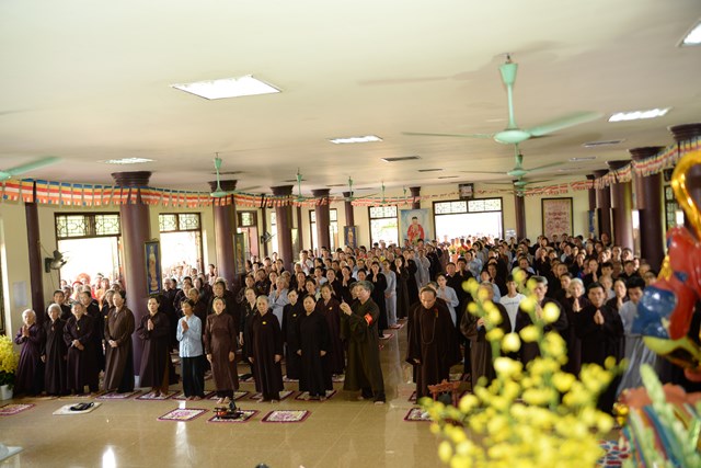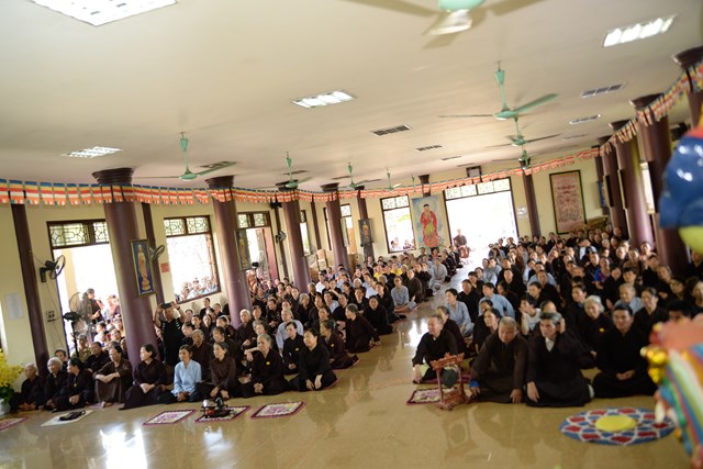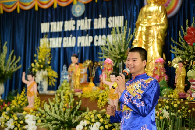 Tiếp đến, Sư Pháp Hành – Chư tăng chùa Bửu Quang, thành phố Hồ Chí Minh đã thay mặt cho BTC đại lễ lên tuyên đọc Diễn văn Phật đản PL. 2562 của Hòa thượng Thích Thiện Nhơn – Chủ tịch HĐTS TƯ GHPGVN. Trong bài diễn văn Phật đản của hòa thượng chủ tịch HĐTS, hòa thượng đã căn dặn chư tôn đức tăng ni cần phải “ Phát huy những thành quả đã đạt được, nhân dịp kính mừng ngày Đản sinh của Đức Từ Phụ năm nay, tôi mong muốn toàn thể Tăng Ni, Cư sĩ, Phật tử Việt Nam ở trong nước, cũng như ở nước ngoài hãy tinh tấn tu học, nỗ lực trong tu tập Giới – Định – Tuệ thông qua Bát Chánh Đạo, thực hiện lời dạy của Đức Phật: “ Này các Thày Tỳ kheo, hãy ra đi mỗi người một ngả để truyền bá Chánh pháp, vì lợi ích cho chúng sinh, vì an lạc cho chư Thiên và loài người”.
