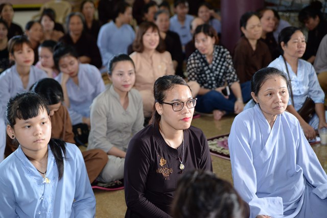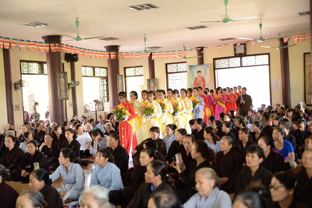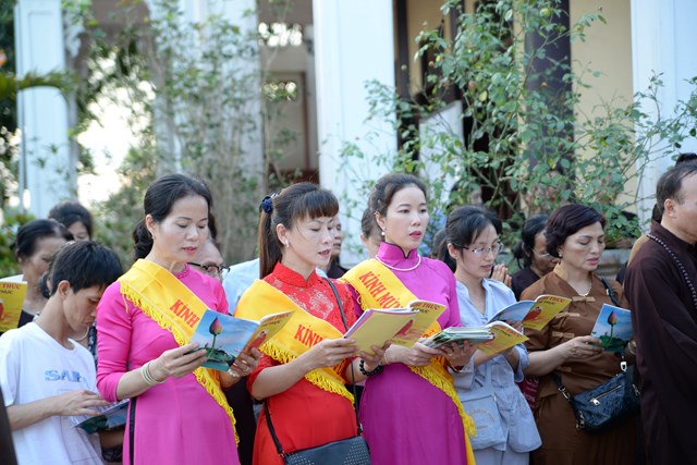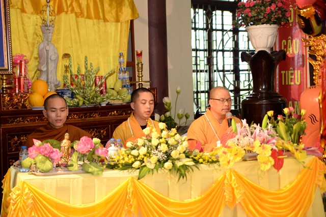 Sau nghi thức niệm Phật cầu gia bị, chào Quốc Kỳ, Đạo Kỳ, một phút nhập từ bi quán tưởng nhớ đến chư tôn đức tăng ni đã viên tịch qua các thời kỳ, các anh hùng liệt sỹ, chiến sỹ trận vong, đồng bào tử nạn, toàn thể đại chúng đã khởi thân đứng dậy, trang nghiêm thành kính đón nghe bức thông điệp Phật đản PL. 2562 của trưởng lão Hòa thượng Thích Phổ Tuệ – Đức Pháp chủ GHPGVN do Đại đức Thích Thanh Nghĩa tuyên đọc. Bức thông điệp có đoạn: “ Kỷ niệm ngày Đức Phật đản sinh, ngược dòng lịch sử tự hào về sự đóng góp vĩ đại của các bậc Tổ sư đại trí cho dân tộc, Tăng Ni, Phật tử, tổ chức thành viên Giáo hội Phật giáo Việt Nam phải nâng cao tinh thần: “Trí tuệ – Kỷ cương – Hội nhập – Phát triển”, nỗ lực không ngừng làm cho Đạo Phật xương minh, tiếp tục đóng vai trò quan trọng trong khối đại đoàn kết dân tộc, tích cực trong sự nghiệp xây dựng và bảo vệ Tổ quốc Việt Nam, góp phần đem lại cuộc sống an lạc, thịnh vượng cho nhân dân, hòa bình cho nhân loại.”