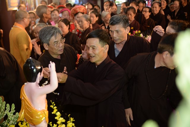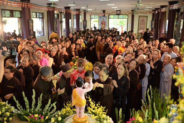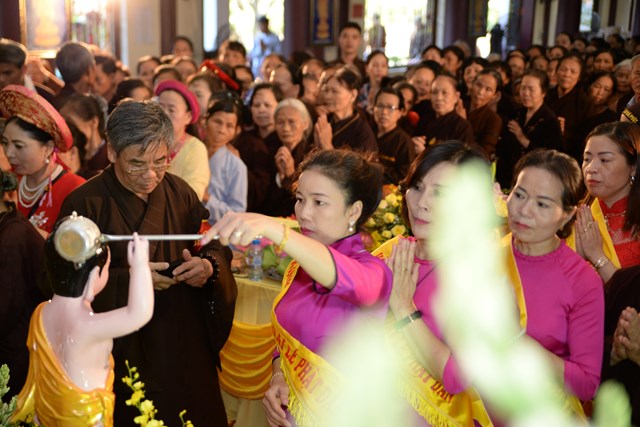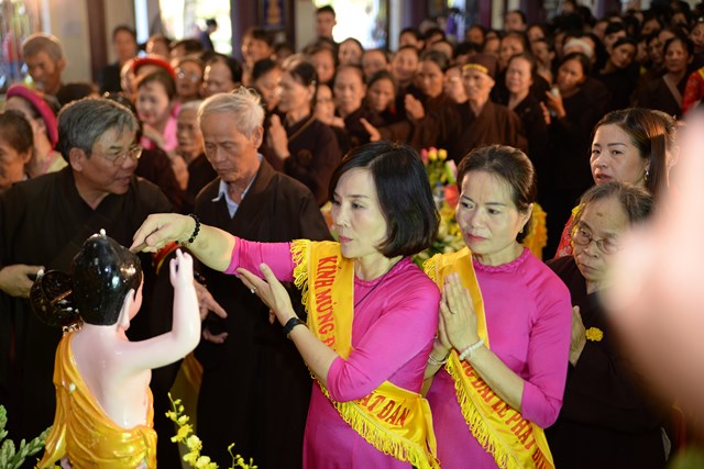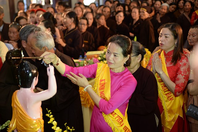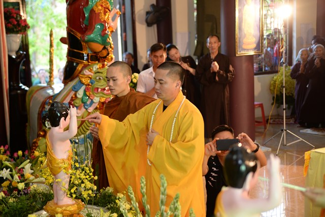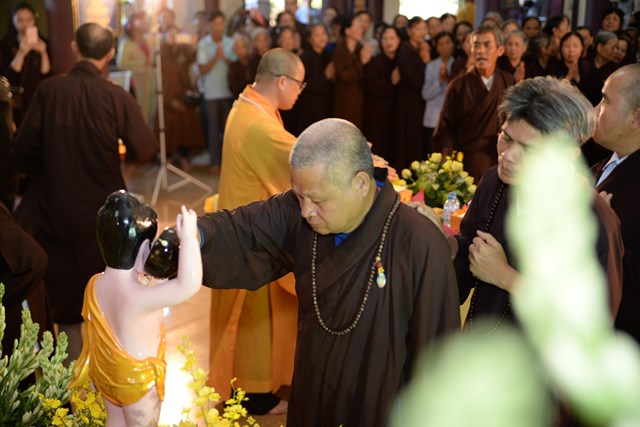 Trước khi chính thức bước vào nghi lễ tắm Phật truyền thống, thượng tọa Thích Thanh Phúc – Trưởng BTC đại lễ đã lên ban đạo từ nói lên ý nghiã của lễ tắm Phật và nguồn gốc của nghi lễ tắm Phật. Theo đó, chúng ta tắm Phật ở đây là tắm cho chính thân, tâm của chúng ta, gột rửa mọi phiền nào, gột rửa tham, sân si…để có cuộc sống an lạc và hạnh phúc. Ngoài ra, lễ tắm Phật như là một cử chỉ, hành động để tỏ lòng tôn kính, hân hoan của người con Phật đối với sự xuất hiện của đấng Giác Ngộ hoàn toàn xuất hiện trên cuộc đời này, cách đây hơn 2600 năm.