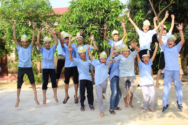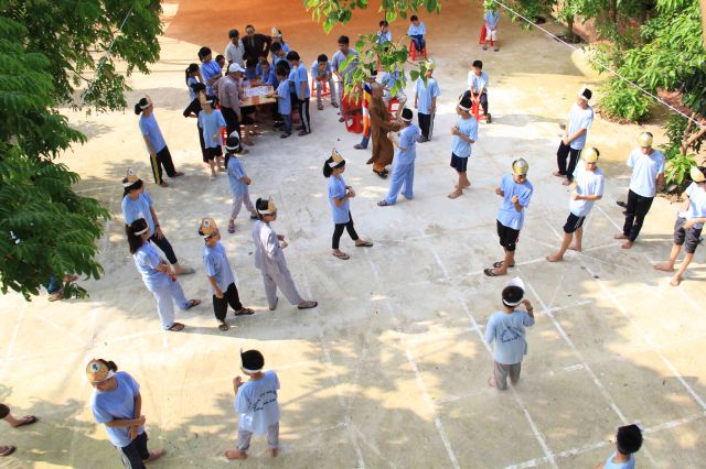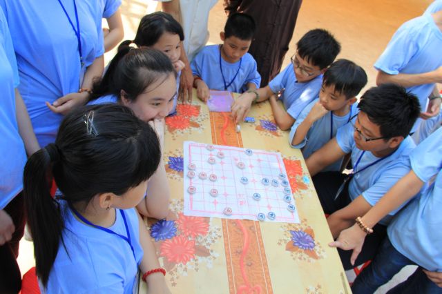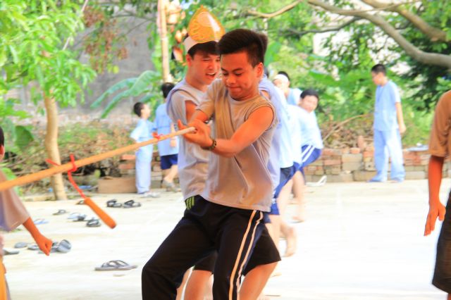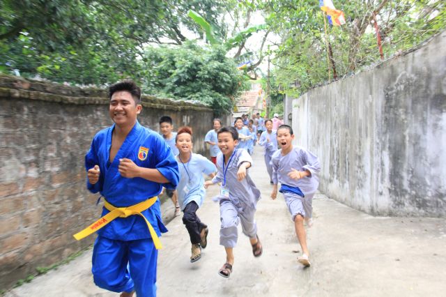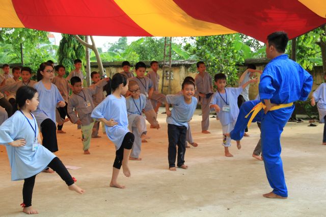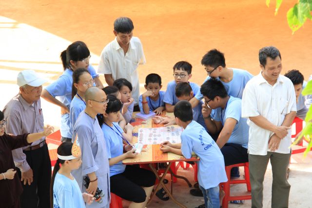 Các bạn được thể hiện sức trẻ và sự sôi động của mình qua các trò chơi tập thể, trò chơi dân gian, đặc biệt là trải nghiệm trò chơi Cờ người. Đây là một trò chơi dân gian Việt Nam giải trí cho số đông vào những dịp lễ cổ truyền khi làng mở hội. Các bạn hào hứng tham gia và linh hoạt di chuyển theo những nước cờ, kết hợp với các động tác võ thuật căn bản vừa được học tại khoá tu. Tuy không được điêu luyện như những lễ hội truyền thống, nhưng cũng hình thành ý niệm, giúp các bạn trẻ có cơ hội ôn lại một trò chơi trí tuệ kết hợp với sức lực lâu đời của dân tộc.