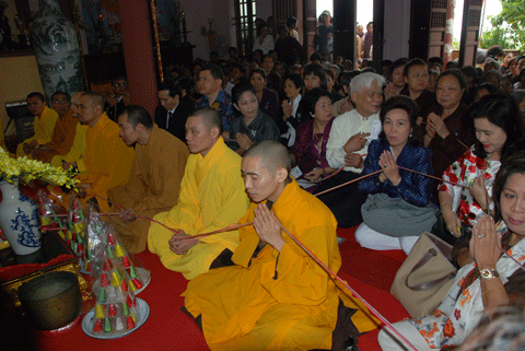 Tham dự và chứng minh buổi lễ có HT Thích Thanh Sam – Phó pháp chủ GHPGVN, HT Phạ Mu Ni A No Ma Khua- Trụ trì chùa Vắt Pạ Xạ- Bun Na Vạt – Thủ đô Bangkok – Vương quốc Thái Lan, TT Thích Quảng Hà – Phó ban TT BTS Phật giáo Nam Định – trụ trì chùa Cẩm, TT Thích Thanh Chất – Phó ban nghi lễ TW cùng chư tôn đức Thượng toạ, Đại đức phái đoàn Phật giáo Nam Tông, BTS Phật giáo tỉnh Nam Định.