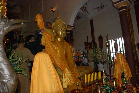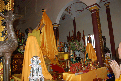 Tăng Ni Phật tử của chùa nói riêng cũng như của tỉnh Hội Phật giáo tỉnh Nam Định nói chung vô cùng hân hoan được cung đón bảo tượng đức Giáo chủ Thích Ca Mâu Ni và hai đại đệ tử của Ngài là A Nam và Ca Diếp bằng chất liệu đồng do Đại sứ quán Thái Lan tại Hà Nội dâng cúng về chốn Tổ chùa Cẩm phụng thờ.