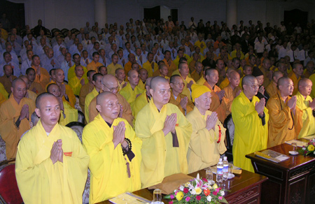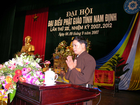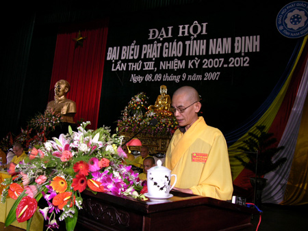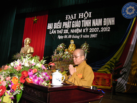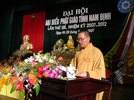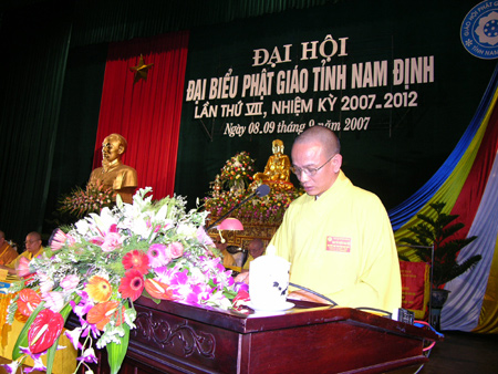 ĐĐ. Thích Quảng Hà đọc báo cáo tổng kết công tác Phật sự trong 5 năm qua và phương hướng hoạt động Phật sự của nhiệm kỳ VII (2007-2012).