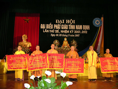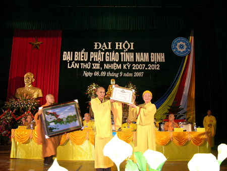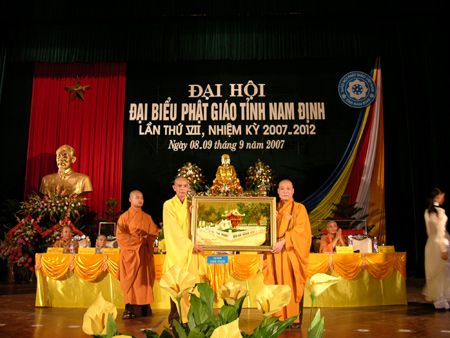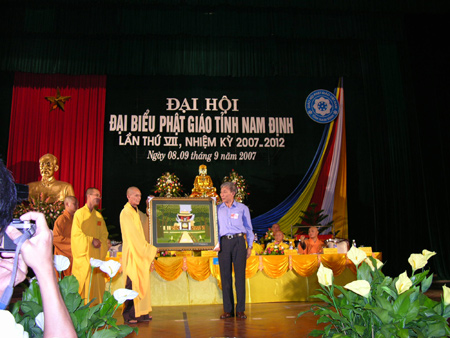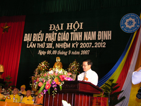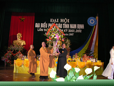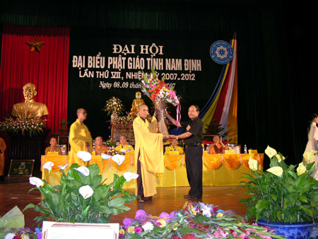 TT. Thích Bảo Nghiêm thay mặt cho các BTS tỉnh hội Phật giáo phía Bắc tặng hoa, phát biểu tuỳ hỷ và tán thán công đức của Tỉnh hội phật giáo Nam Định, tin tưởng khoá VII Phật giáo tỉnh Nam Định sẽ đạt được nhiều kết quả hơn nữa cùng nhân dân xây dựng tỉnh Nam Định phát triển về mọi mặt kinh tế, chính trị, văn hoá xã hội.