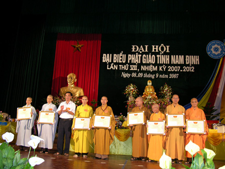 Với những thành tích trên, năm 2005 các cấp Chính quyền tỉnh tặng 395 bằng khen cho các chùa đạt danh hiệu chùa tinh tiến, và được Thủ tướng Chính phủ tặng bằng khen cho Phật giáo tỉnh nhà.
