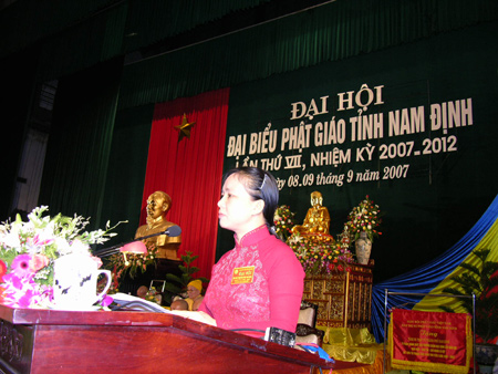 Ông Trần Trọng Tấn thay mặt Phật tử tỉnh Nam Định đọc tham luận nêu những ý kiến đóng góp thiết thực: Tỉnh hội Phật giáo cần khuyến khích các chùa mở phòng phát hành kinh sách, báo chí Phật giáo, vận động và tạo điều kiện cho thế hệ trẻ tới chùa lễ Phật, nghe giảng giáo lý, xoá đi mặc cảm, nhìn nhận sai lệnh “Trẻ vui nhà, già vui chùa”. Các Tăng Ni trong ban Hoằng pháp tới các vùng sâu vùng xa trong các huyện của tỉnh để thuyết giảng giáo lý, tạo điều kiện cho tín đồ Phật tử nâng cao trình độ hiểu biết và niềm tin Phật giáo…
