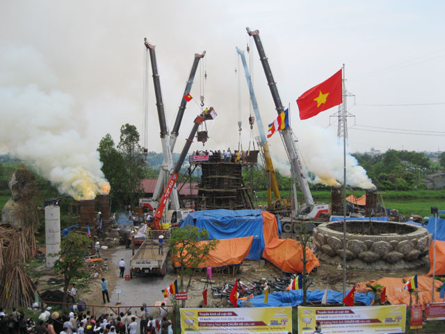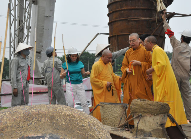 Công trình được khởi công phóng mẫu từ tháng 4/2011 do công ty Cổ phần Đầu tư Mỹ Thuật Việt Nam thực hiện, Tập đoàn Nam Cường làm chủ đầu tư; Giai đoạn đúc đồng sẽ do công ty TNHH đúc đồng Thắng Lợi, một đơn vị thuộc làng đúc đồng truyền thống nổi tiếng huyện Ý Yên, tỉnh Nam Định thực hiện.