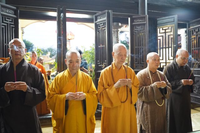 Tại nơi đây, Đức Đệ tứ Pháp chủ GHPGVN cùng chư vị Hòa thượng Thích Bảo Nghiêm – Phó Chủ tịch Hội đồng Trị sự, Trưởng ban Hoằng pháp T.Ư, Trưởng ban Trị sự GHPGVN TP.Hà Nội; Hòa thượng Thích Quảng Hà – Phó Chủ tịch Hội đồng Trị sự, Trưởng ban Trị sự GHPGVN tỉnh Nam Định; Thượng tọa Thích Giác Dũng – Thư ký Văn phòng II Hội đồng Chứng minh; Thượng tọa Thích Thanh Phong – Phó Chủ tịch Hội đồng Trị sự, Trưởng ban Kinh tế – Tài chính T.Ư cùng cùng chư Thượng tọa Văn phòng Đức Pháp chủ, Ban Trị sự các tỉnh phía Bắc đã lễ Phật, dâng hương lễ Tổ tại Tổ đường.