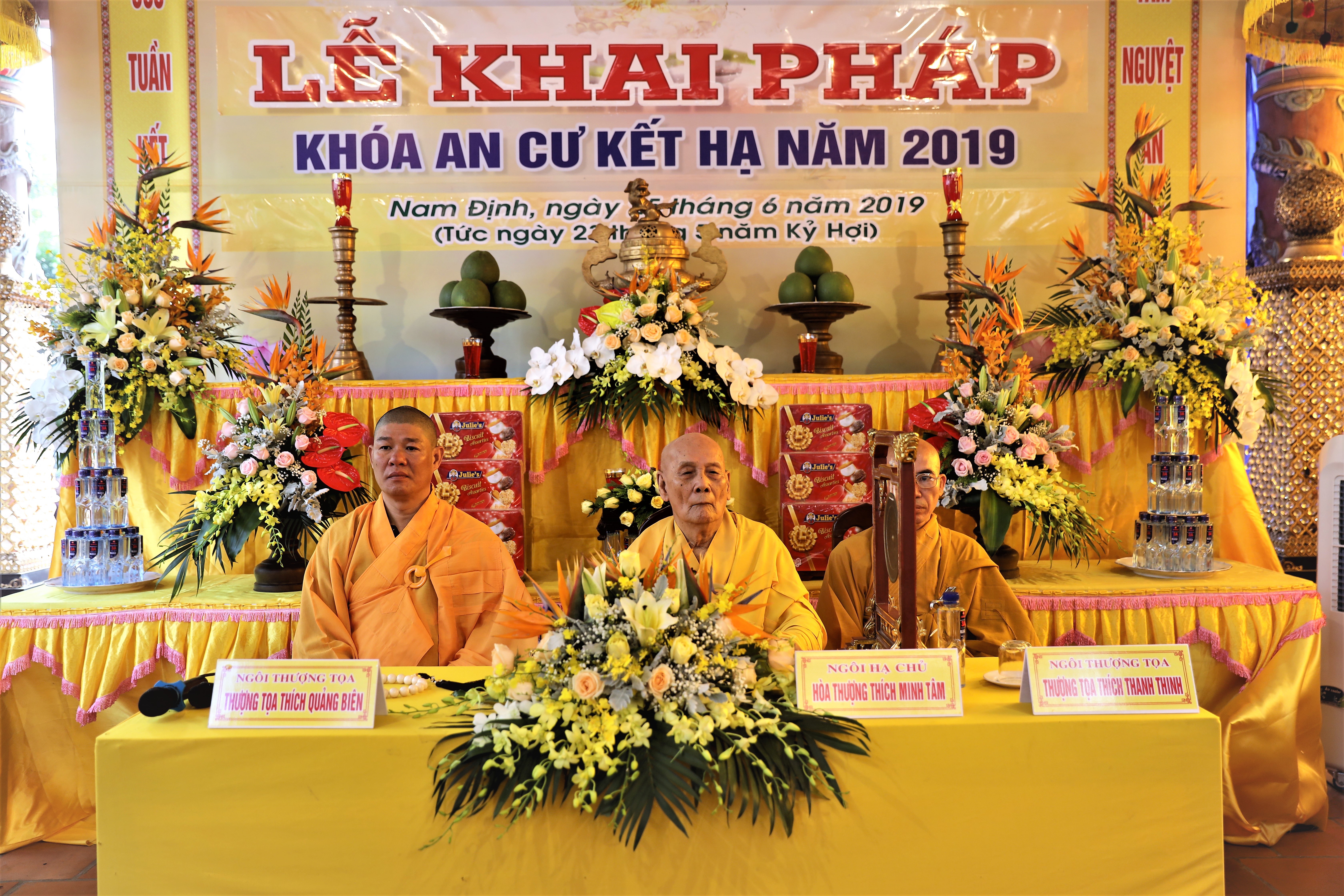 Trong không khí trang nghiêm thanh tịnh bởi ý nghĩa thiêng liêng cao cả của buổi lễ khai Pháp, dưới sự chứng minh của HT.Thích Minh Tâm- Thành viên HĐCM GHPGVN, Chứng minh Đạo sư BTS GHPGVN tỉnh Nam Định, Hạ chủ đạo tràng An cư và hơn 70 hành giả an cư là Chư tôn Thượng toạ, Đại đức tăng, ni và hơn 1000 quý nam nữ đạo hữu phật tử về thính pháp, cúng dường gieo duyên pháp hội An cư, với lòng chí kính, chí thành cầu học Phật đạo làm cho buổi lễ càng thêm phần trang nghiêm.