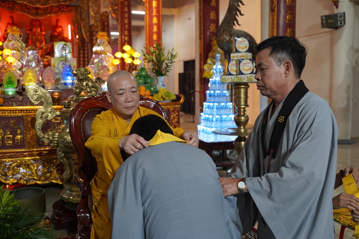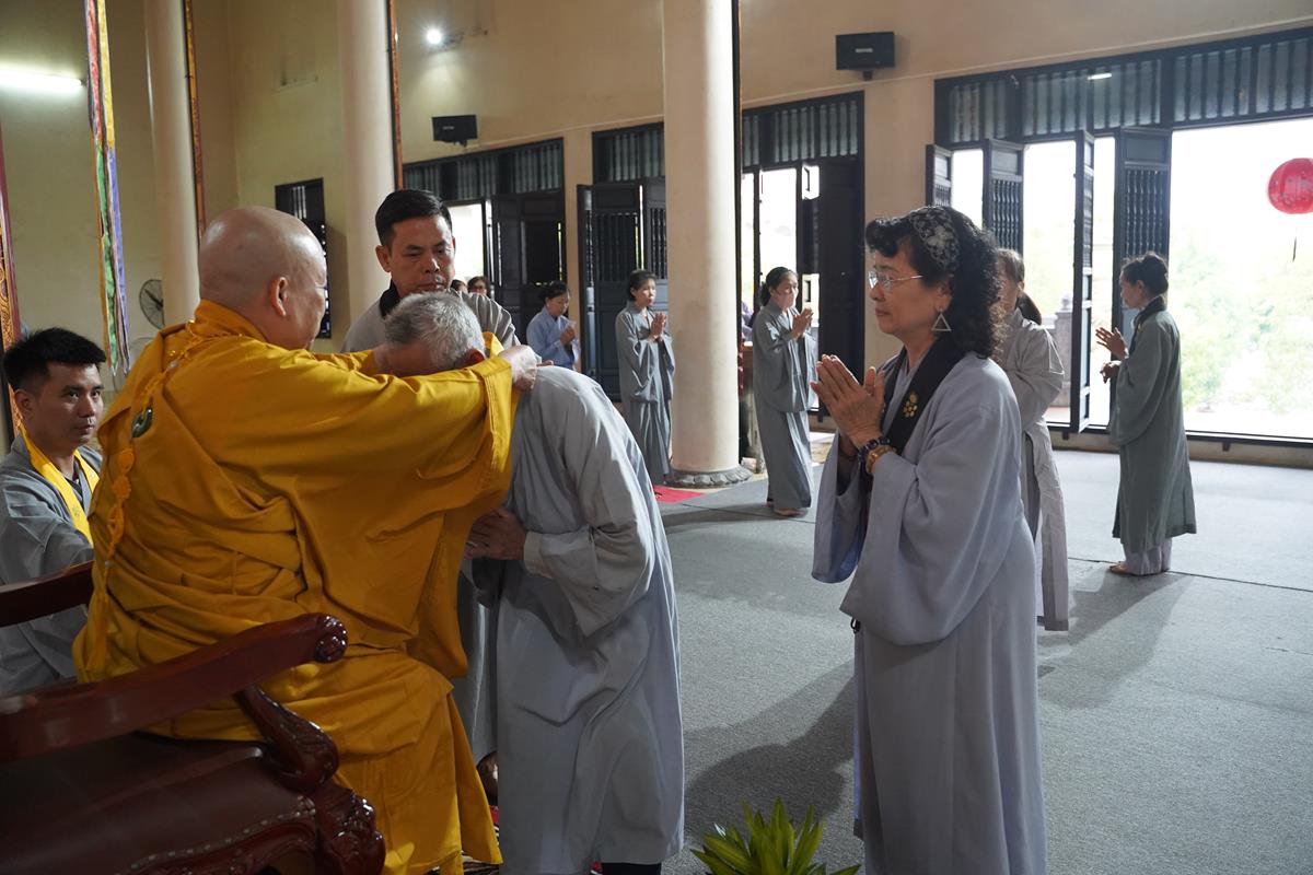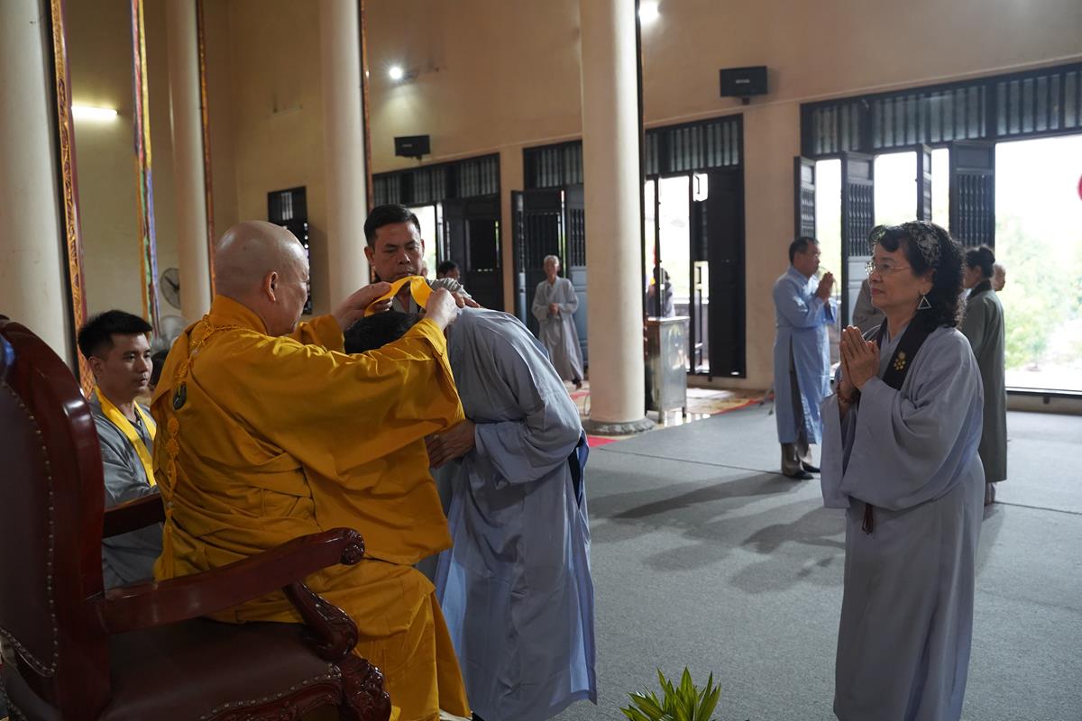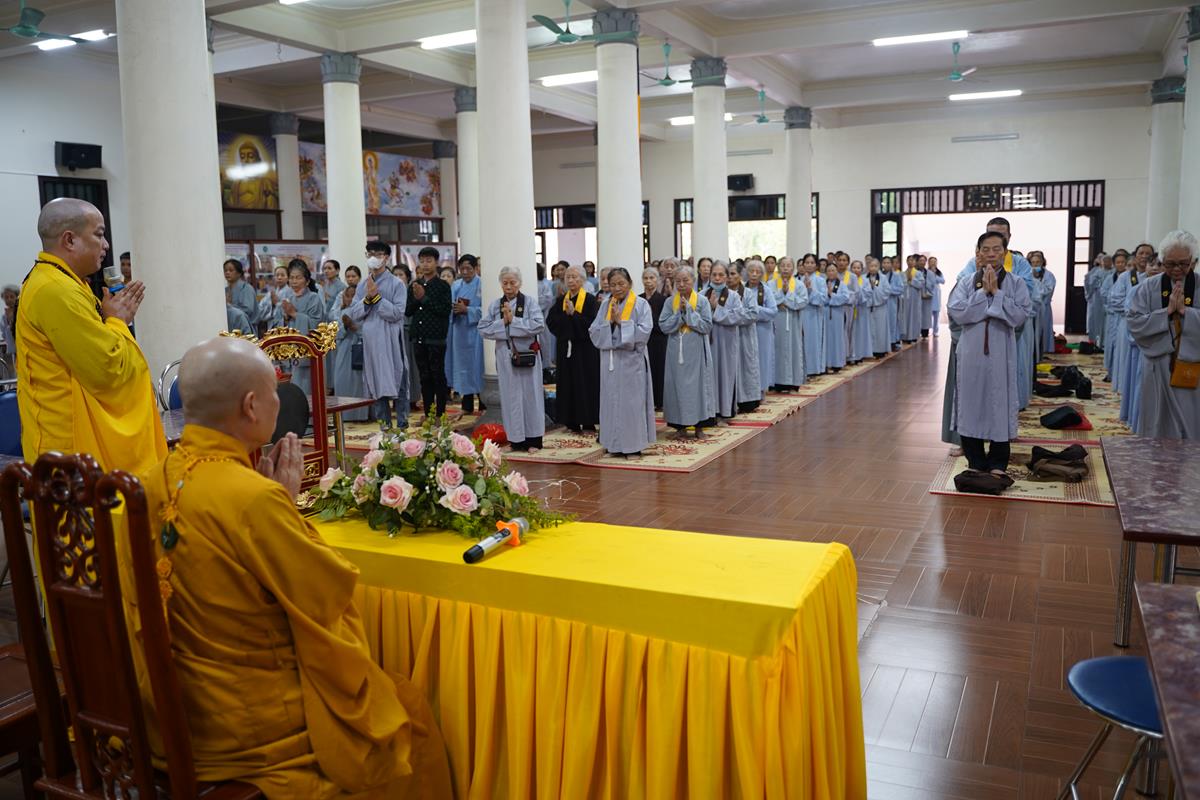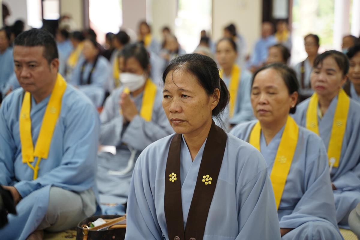 Sau đó, đại chúng cung thỉnh Hòa thượng Thích Bảo Nghiêm – Phó chủ tịch HĐTS kiêm Trưởng Ban Hoằng Pháp TƯ GHPGVN quang lâm truyền trao Tam quy Ngũ giới.