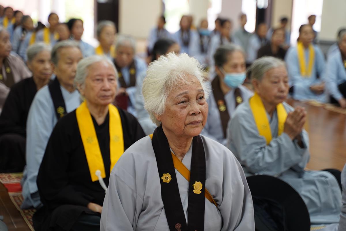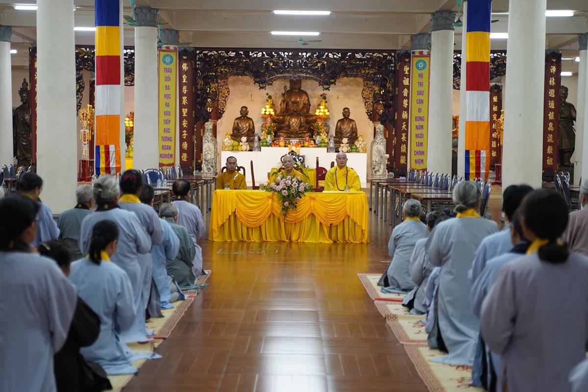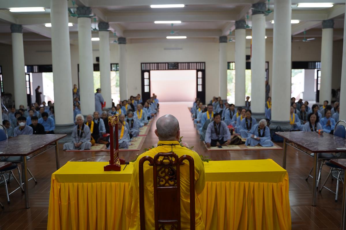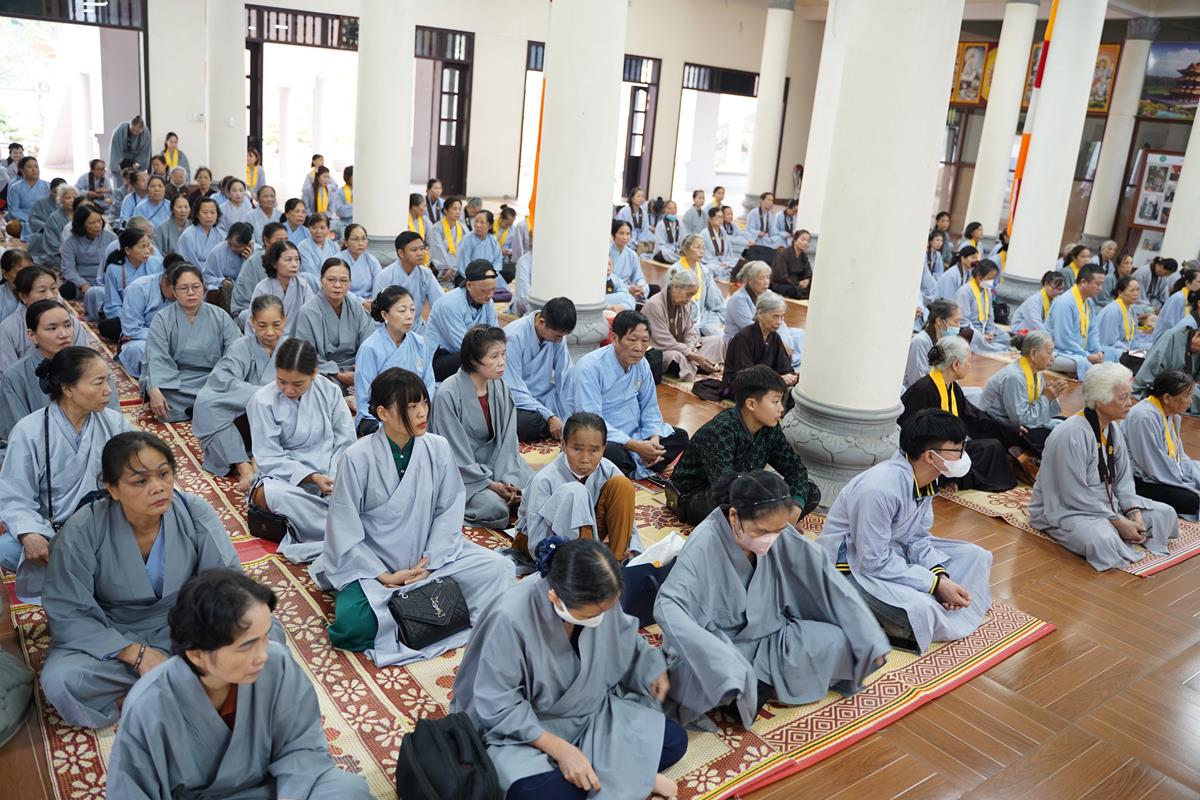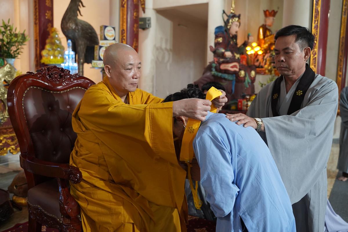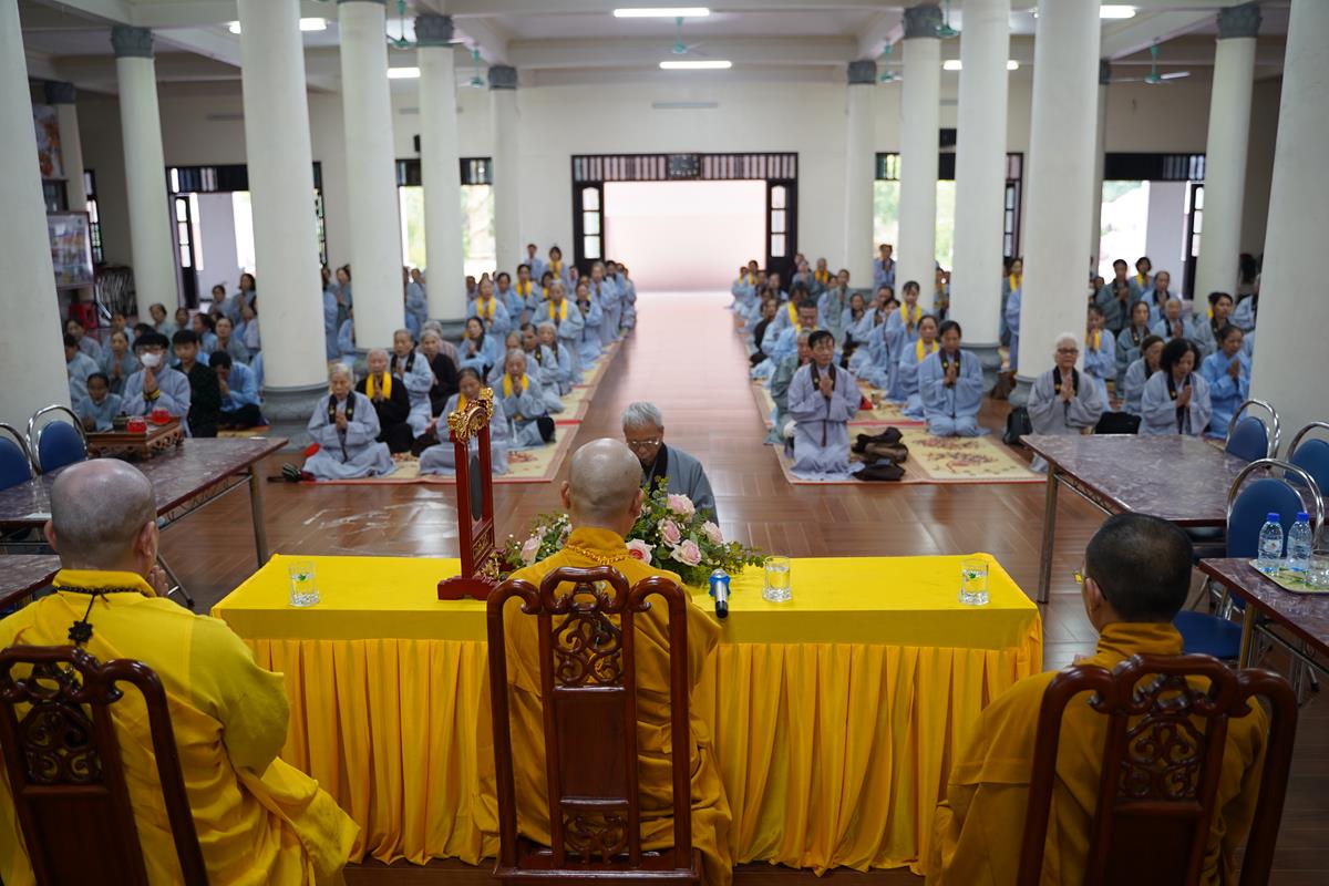Sau đó, đại chúng cung thỉnh Hòa thượng Thích Bảo Nghiêm – Phó chủ tịch HĐTS kiêm Trưởng Ban Hoằng Pháp TƯ GHPGVN quang lâm truyền trao Tam quy Ngũ giới.