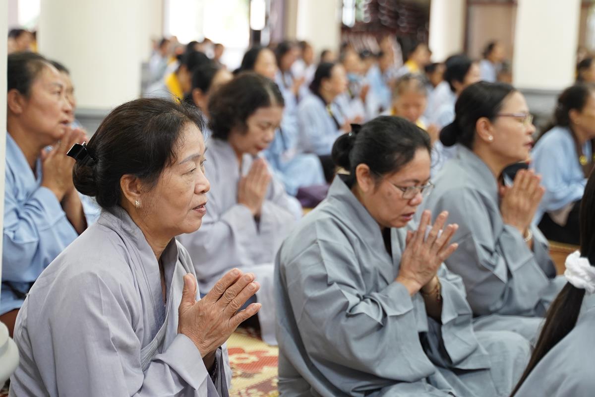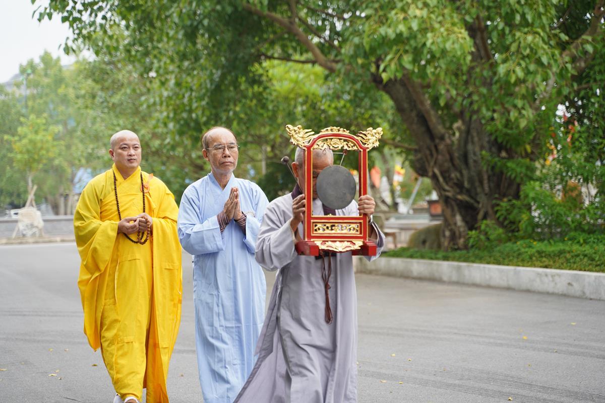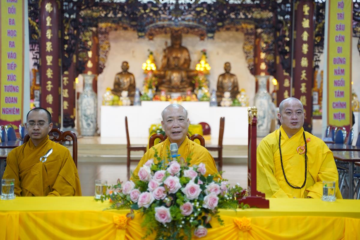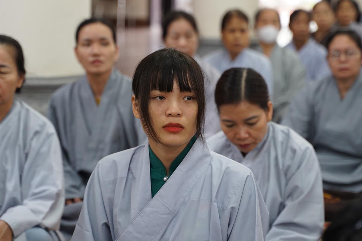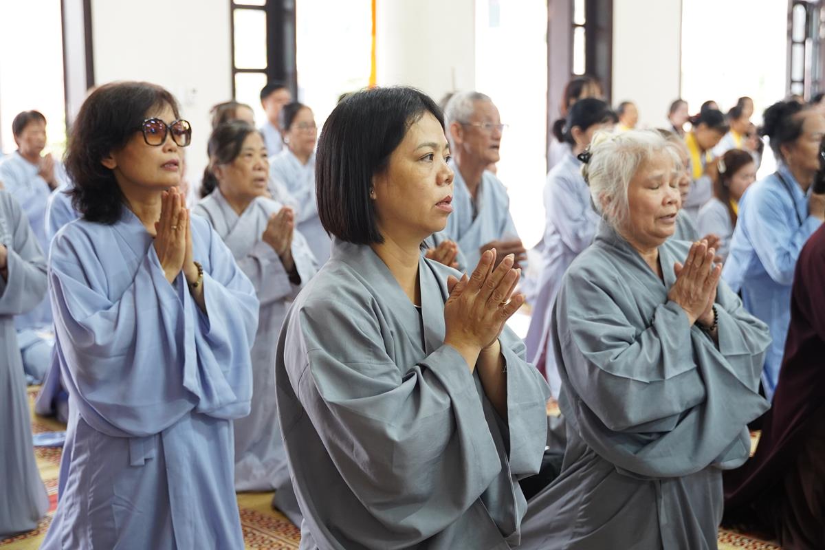 Sau đó, đại chúng cung thỉnh Hòa thượng Thích Bảo Nghiêm – Phó chủ tịch HĐTS kiêm Trưởng Ban Hoằng Pháp TƯ GHPGVN quang lâm truyền trao Tam quy Ngũ giới.