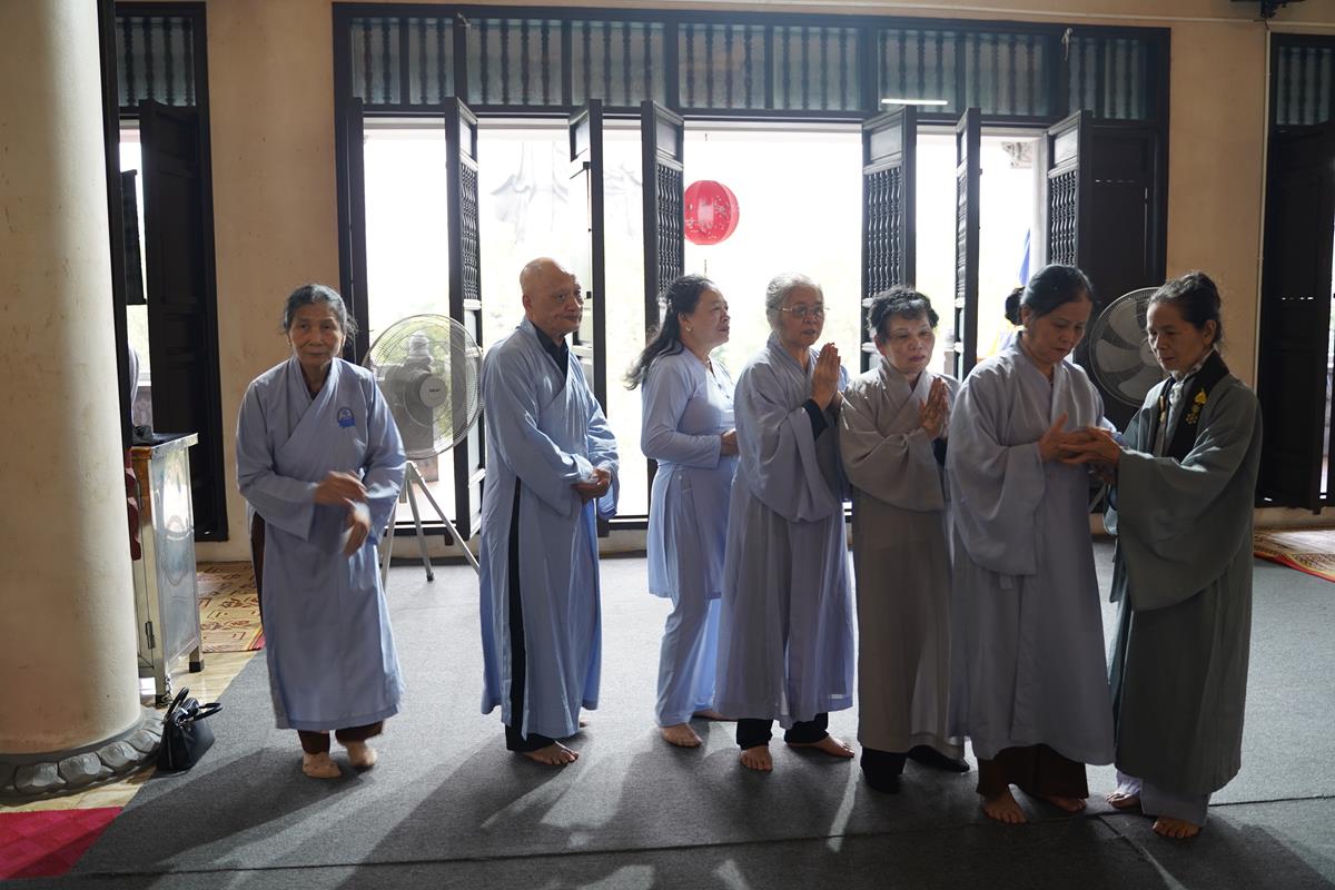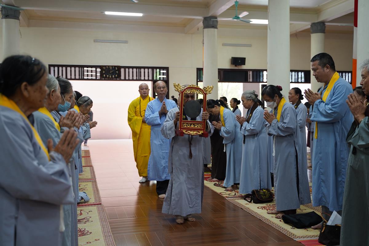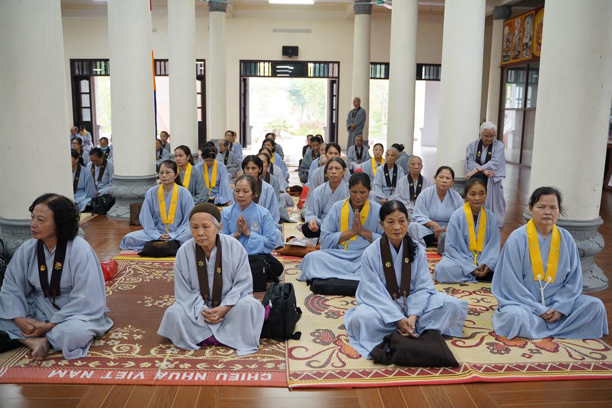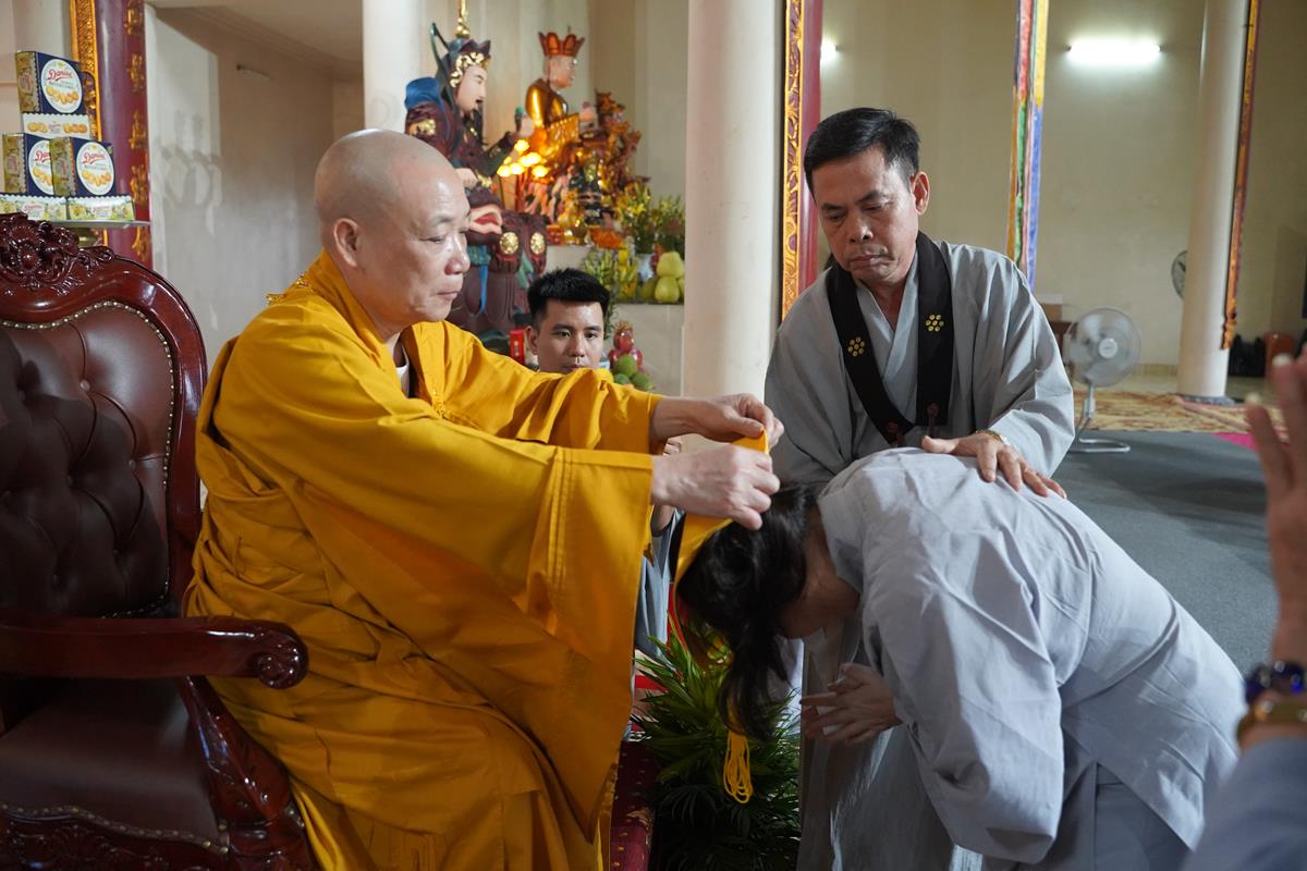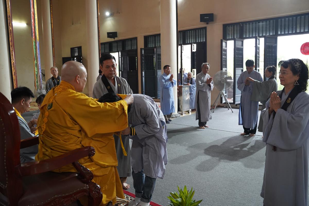 Sau đó, đại chúng cung thỉnh Hòa thượng quang lâm Tam bảo, lễ Phật và trao truyền pháp y cho hơn 112 Phật tử phát tâm thụ trì. Có thể nói, đây chính là những Phật tử đầu tiên của Đạo tràng Pháp Hoa Trúc Lâm Thiên Trường – Nam Định.