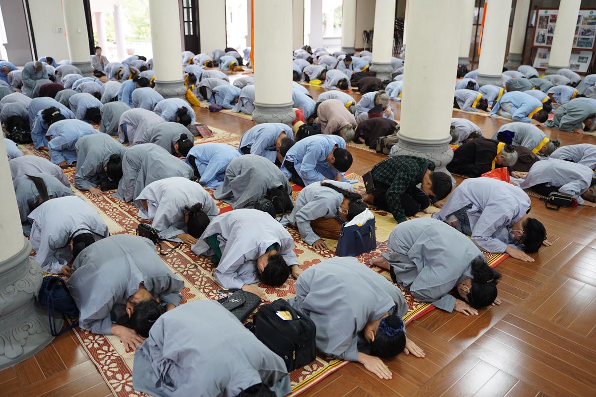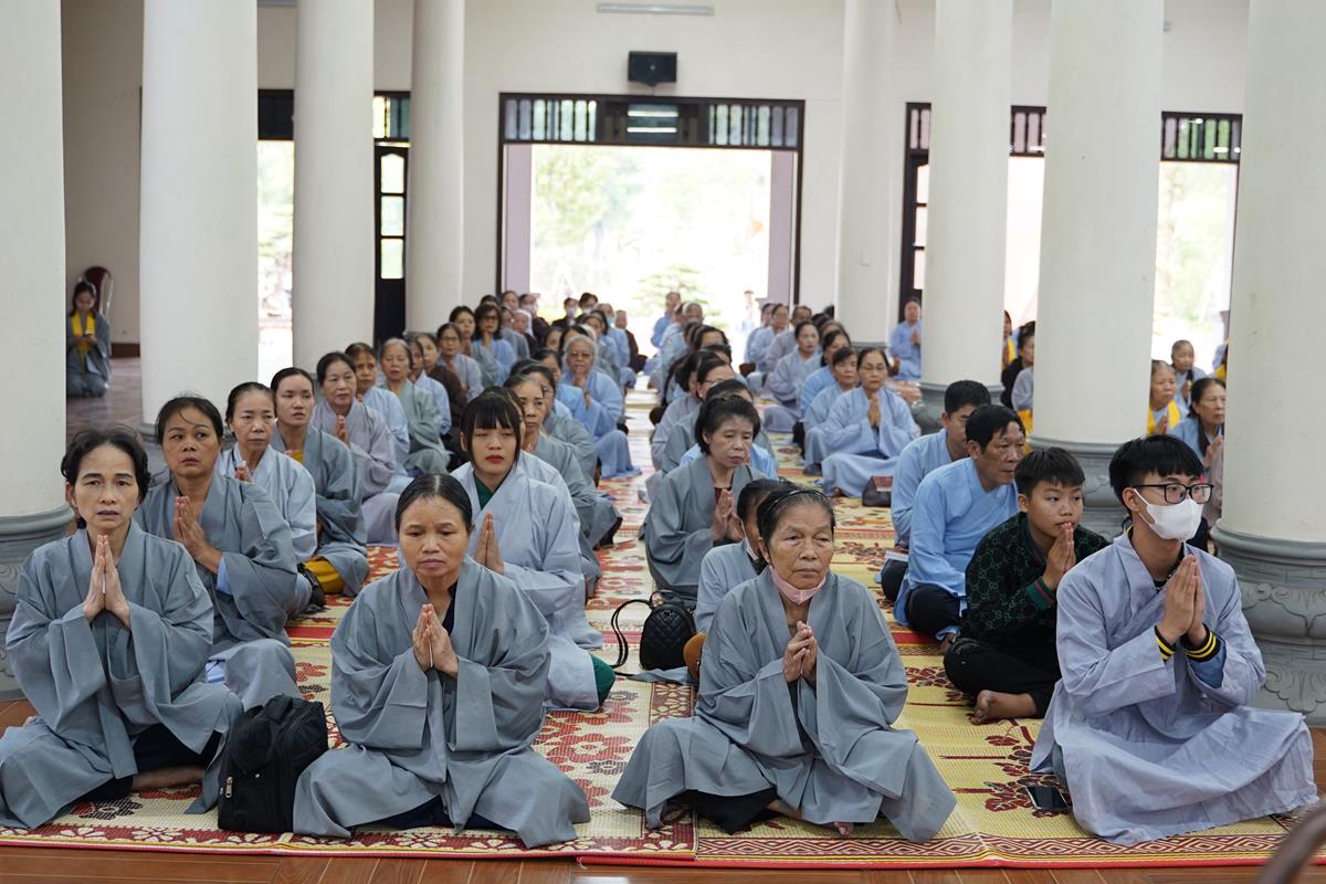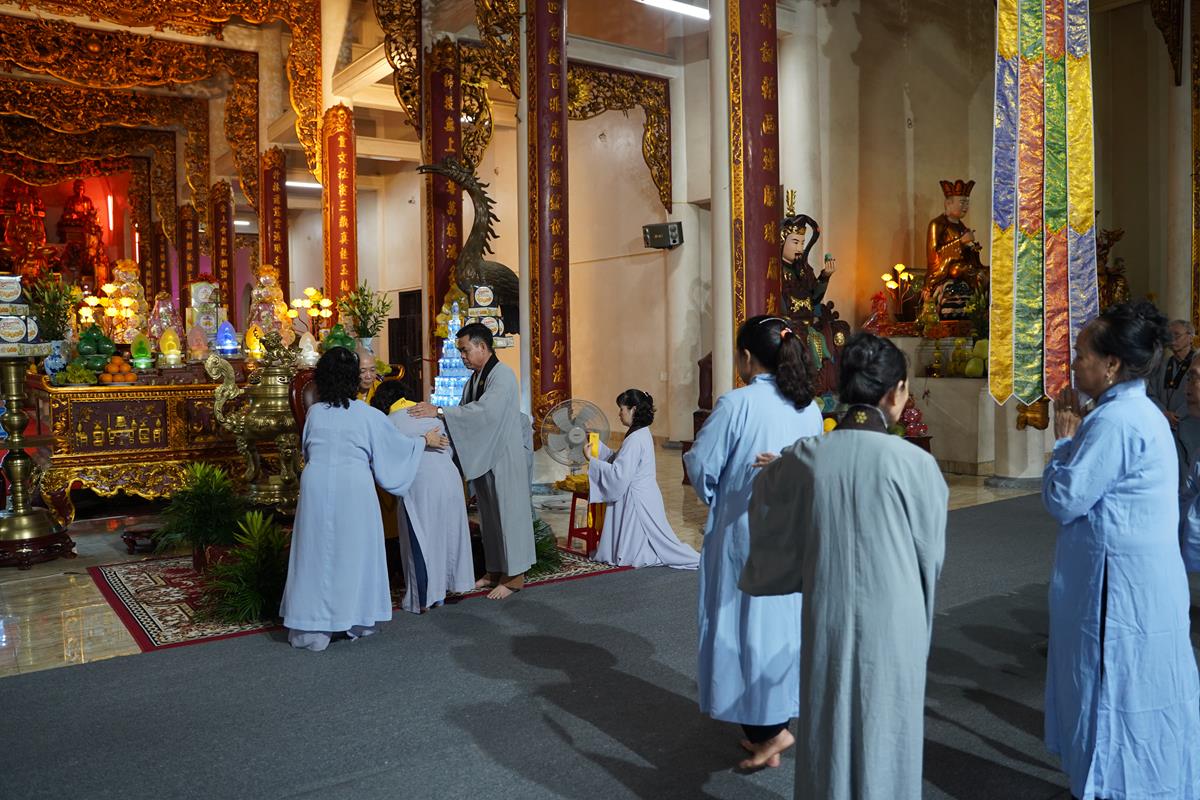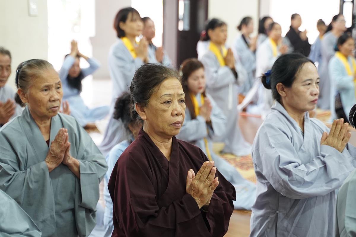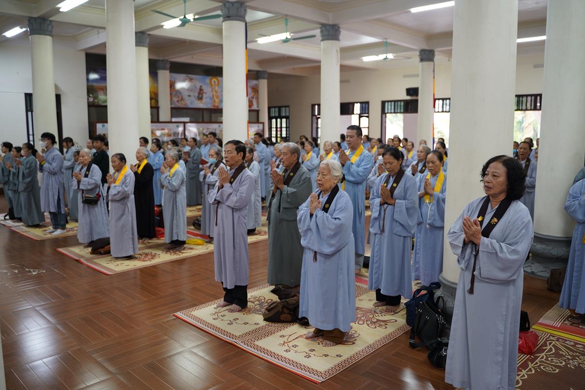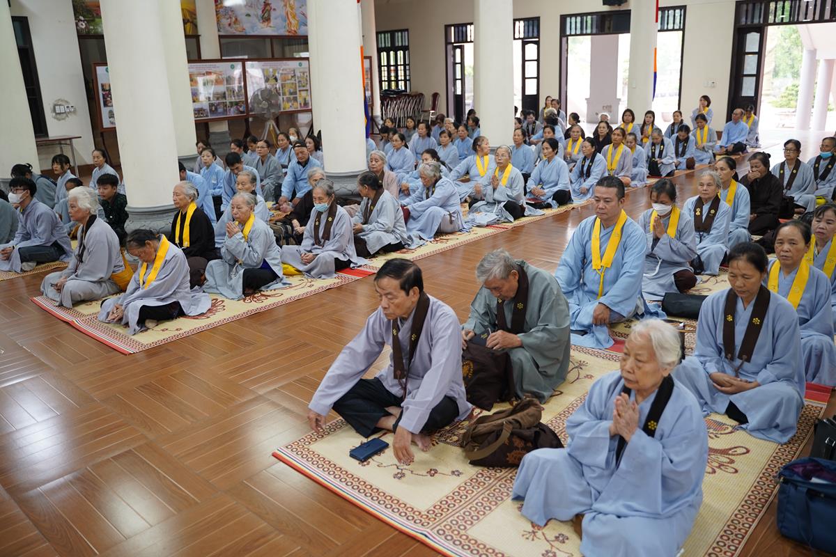 Sau đó, đại chúng cung thỉnh Hòa thượng quang lâm Tam bảo, lễ Phật và trao truyền pháp y cho hơn 112 Phật tử phát tâm thụ trì. Có thể nói, đây chính là những Phật tử đầu tiên của Đạo tràng Pháp Hoa Trúc Lâm Thiên Trường – Nam Định.