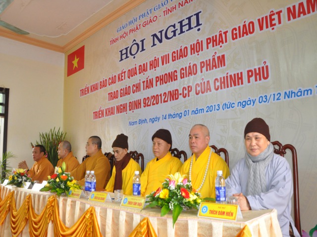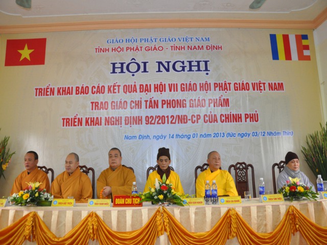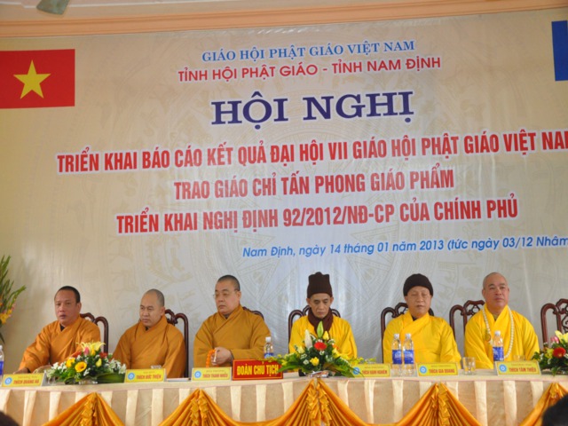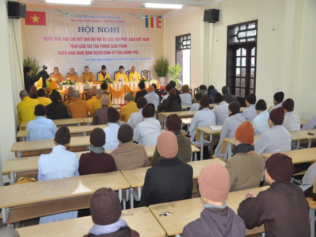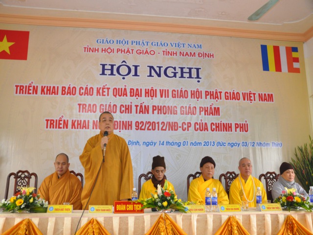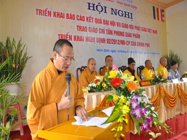 TT Thích Tâm Thiệu – Ủy viên HĐTS GHPGVN – Phó BTS kiêm Trưởng ban Kiểm soát Phật giáo tỉnh Nam Định đọc chương trình Hoạt động Phật sự nhiệm kỳ VII (2012-2017), Hội nghị cũng đã được nghe báo cáo tổng kết Phật sự năm 2012 của BTS Phật giáo tỉnh Nam Định, theo đó trong năm 2012 các Phật sự của BTS cũng như của các Ban, ngành trực thuộc, Ban Đại diện Phật giáo các huyện đều hoàn thành tốt những kế hoạch đã đặt ra nhằm thúc đẩy Phật sự và Phật giáo tỉnh nhà ngày mỗi phát triển .