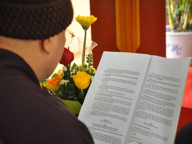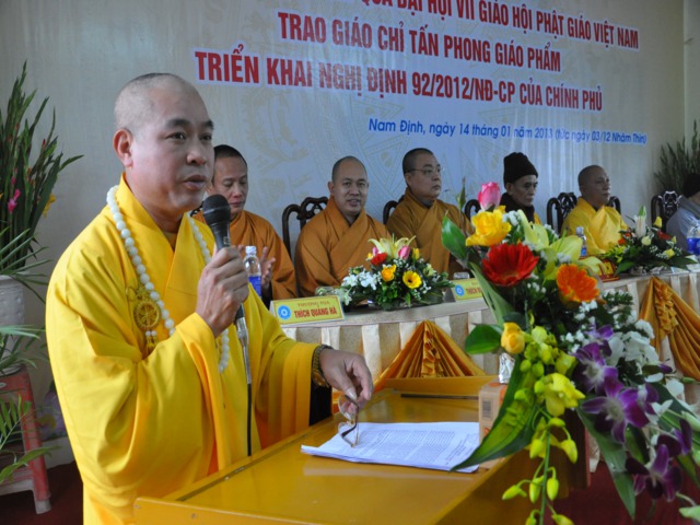 ĐĐ Thích Giác Vũ –Phó thư ký kiêm Chánh văn phòng BTS Phật giáo tỉnh Nam Định thông qua Nghị quyết Đại hội VII Phật giáo Toàn quốc.