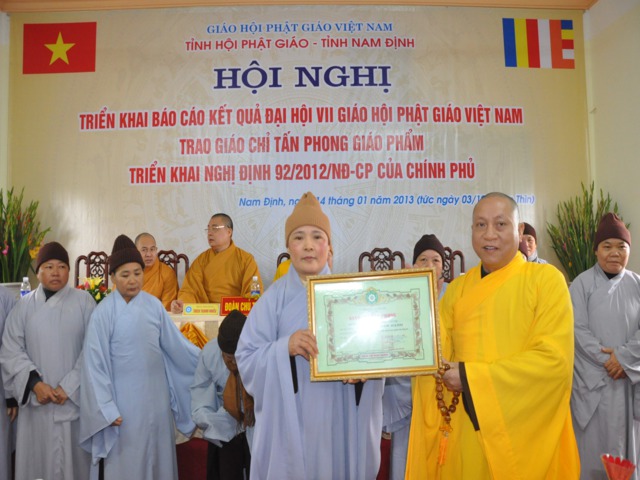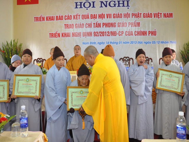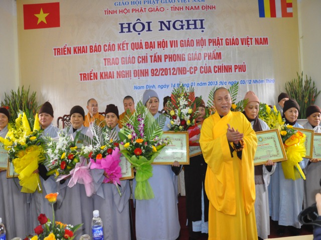 Hội nghị đã công bố danh sách 43 Tăng Ni thuộc tỉnh hội Phật giáo Nam Định được đón nhận giáo chỉ tấn phong giáo phẩm của Đức Pháp chủ HĐCM GHPGVN , bao gồm 3 Hòa thượng, 9 Thượng tọa, 5 Ni trưởng, 26 Ni sư.