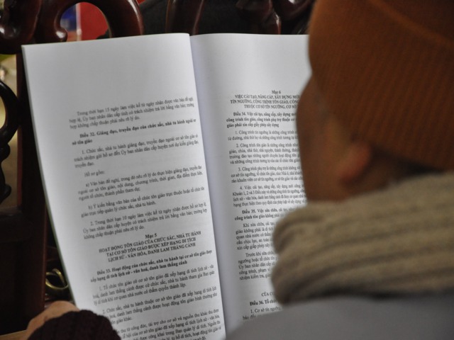 Cũng nhân dịp này ông Dương Ngọc Tấn – Phó Ban tôn giáo Chính phủ đã giới thiệu tới chư Tôn đức về tài liệu nghị định số 92/2012/NĐ – CP Quy định chi tiết và biện pháp thi hành pháp lệnh tín ngưỡng – Tôn giáo.