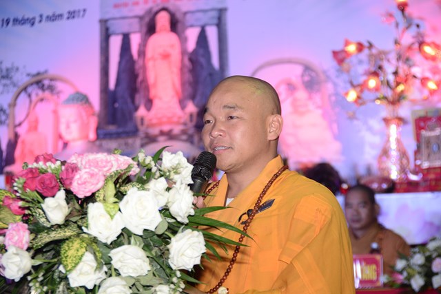 Nhân dịp này, thừa lệnh của Hòa thượng chứng minh tối cao buổi lễ, Thượng tọa Thích Minh Quang – Phó ban kiêm chánh thư ký BTS GHPGVN tỉnh Ninh Bình đã ban đạo từ tán thán công đức của đại đức trụ trì, đồng bào Phật tử và nhân dân địa phương, người góp công, người góp của để xây dựng lên ngôi phạm vũ tố hảo như ngày hôm nay. Thượng tọa cũng mong muốn sẽ tiếp tục nhận đươc sự phát tâm công đức của các nhà hảo tâm, các tổ chức, cá nhân và các Phật tử để công trình xây dựng chùa Linh Quang giai đoạn 2 sớm được hoàn thiện, từ đó phật tử gần xa, nhân dân địa phương sẽ có nơi tu học, sinh hoạt văn hóa tâm linh. Trong lời đạo từ của mình, thượng tọa chứng minh cũng đã nói lên công đức của việc xây chùa nhưng quan trọng nhất là mỗi Phật tử chúng ta phải xây dựng được ngôi chùa ở trong tâm, đó mới là điều quan trọng và thiết yếu. Hiện nay, các Phât tử đi chùa hầu như vẫn chưa xác định được mục đích của mình nên đi chùa chủ yếu là để cầu xin mà không biết rằng mục đích của đi chùa là để tu tâm, dưỡng tính, sửa thân và tâm của mình, thực hành theo lời Phật dạy để tiến tới con đường giác ngộ giải thoát.