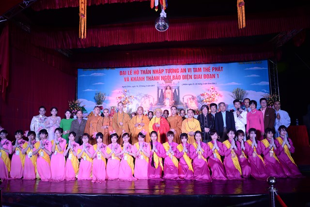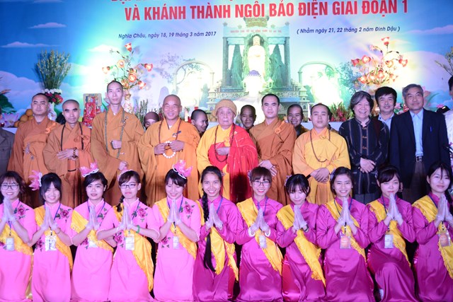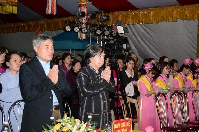 Đến tham dự buổi lễ còn có sự hiện diện của Giáo sư sử học Lê Văn Lan cùng các ông bà lãnh đạo đại diện cho các cấp ủy Đảng thuộc HĐND, UBND, UB MTTQVN huyện Nghĩa Hưng, xã Nghĩa Châu và thôn Chương Nghĩa, tỉnh Nam Định, đông đảo các ban ngành đoàn thể, cùng hàng ngàn quý Phât tử gần xa, du khách thập phương và nhân dân địa phương.