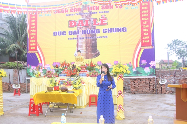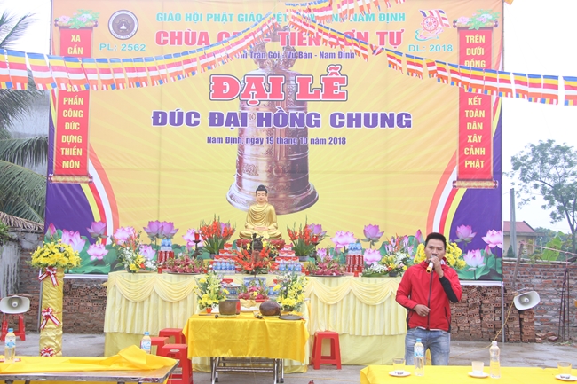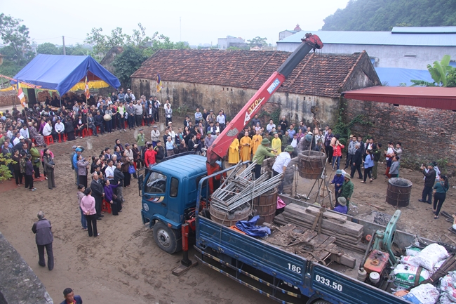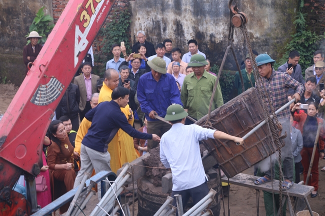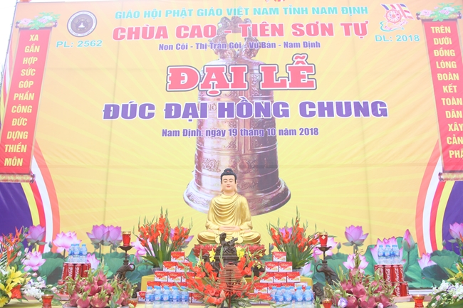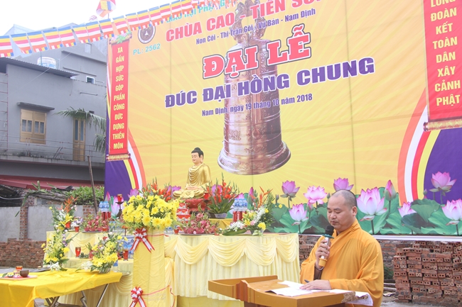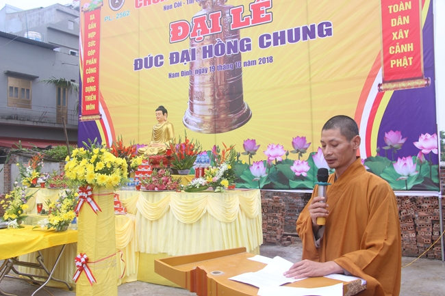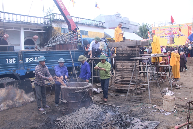 Tại buổi lễ Chư tôn đức chứng minh đã niêm hương, bạch Phật, sái tịnh, trì chú gia trì, chú nguyện rót đồng đúc đại hồng chung nặng 650kg , do thợ Kiên Lao, huyện Xuân Trường, tỉnh Nam Định đúc