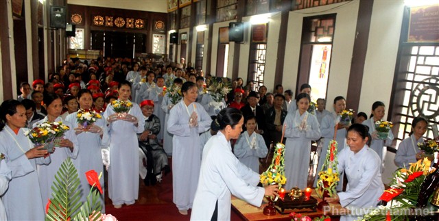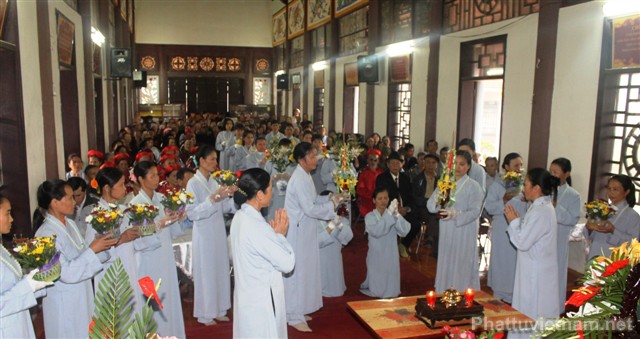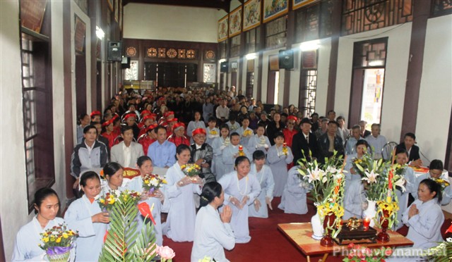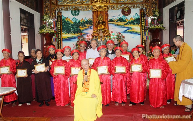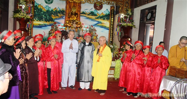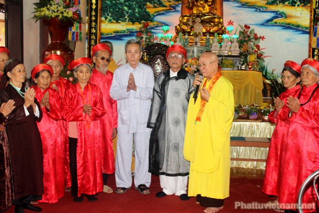 Chứng minh đại lễ có sự hiện diện của TT. Thích Minh Trí, Ủy viên ban hoằng pháp TW GHPGVN, TT. Thích Tâm Thuần, Phó ban đại diện PG huyện Giao Thủy, tỉnh Nam Định, trụ trì Tổ đình chùa Linh Quang – Diêm Điền, huyện Giao Thủy, tỉnh Nam Định, Chư tôn đức Tăng trong chốn trụ xứ tổ đình chùa Linh Quang- Diêm Điền, hơn 100 bậc cao niên và hàng trăm bà con Phật tử trên địa bàn huyện Giao thủy cùng tham dự.