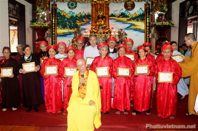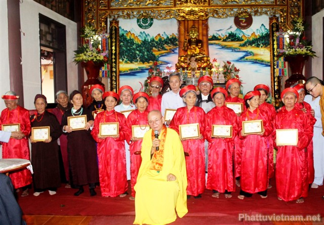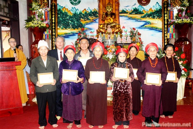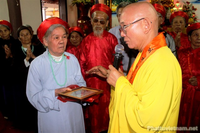 Cuối buổi lễ, nhị vị TT. Thích Minh Trí và TT Thích Tâm Thuần đã trao quà chúc thọ và trao Điệp mừng thọ cho các cụ cao niên có mặt tại buổi lễ.