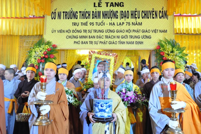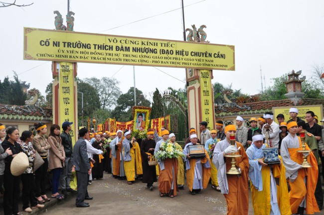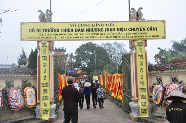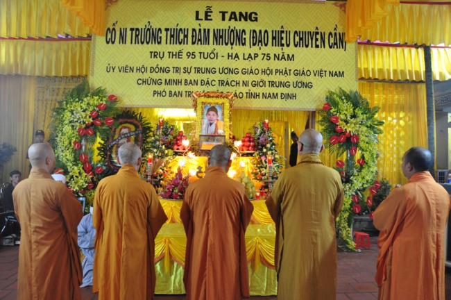 Ni trưởng Thích Đàm Nhượng – Thành viên Hội đồng trị sự TW Giáo hội Phật giáo Việt Nam. Chứng minh Ban đặc trách Ni giới Trung ương, phó Ban Trị sự Phật giáo tỉnh Nam Định, Hiệu phó trường Trung cấp Phật học tỉnh, Chứng minh Ban đặc trách Ni giới tỉnh, Ủy viên Ủy Ban Mặt trận Tổ quốc Việt Nam tỉnh qua các thời kỳ đã chia tay chúng ta đi vào cõi vĩnh hằng, để lại bao nỗi tiếc thương vô hạn trong toàn thể môn đồ pháp quyến, Tăng Ni, tín đồ Phật tử và nhân dân.