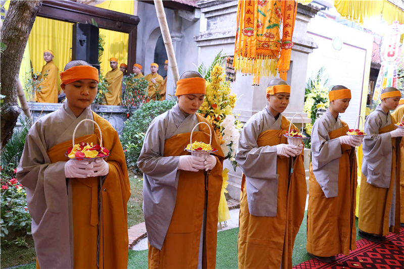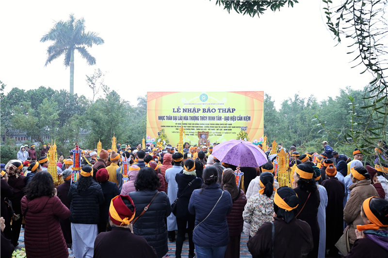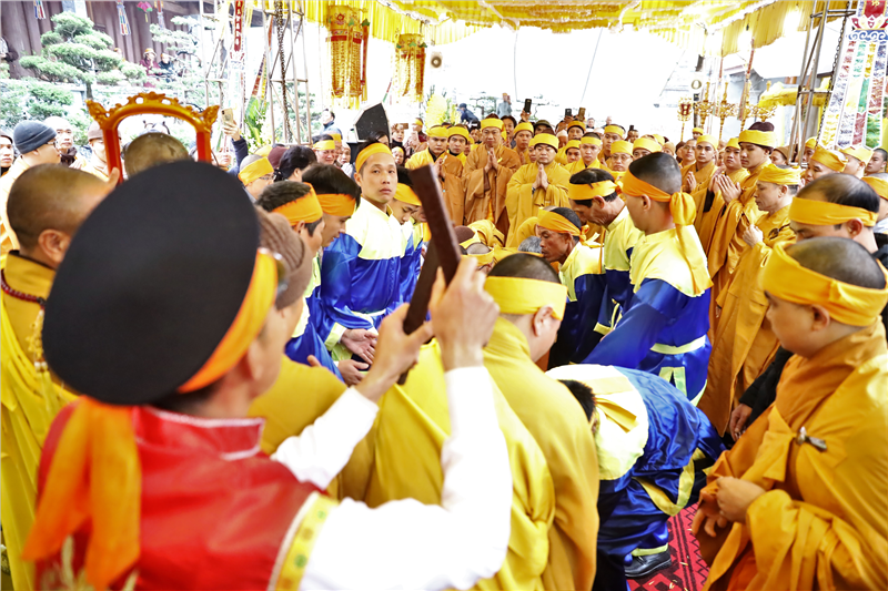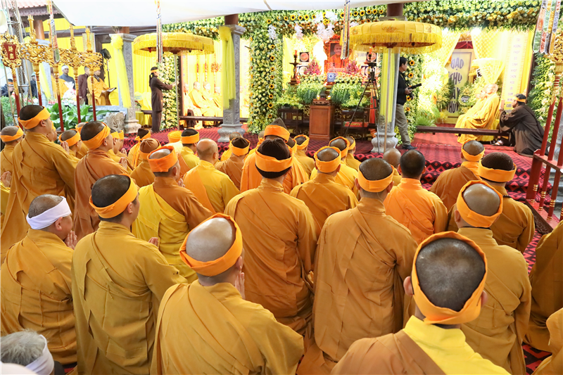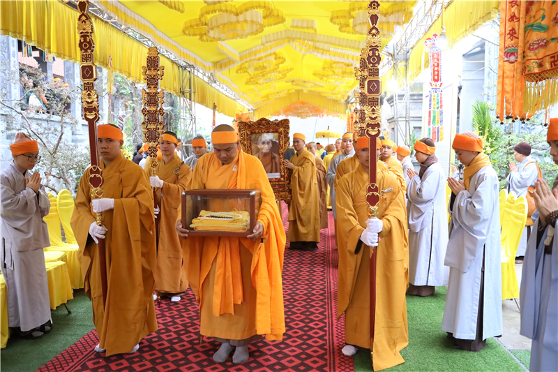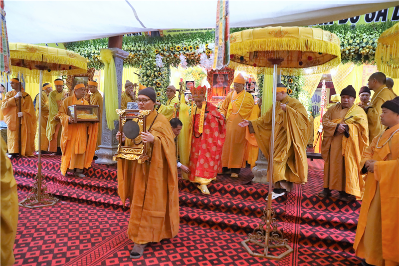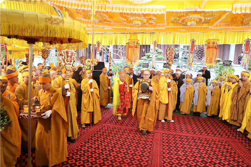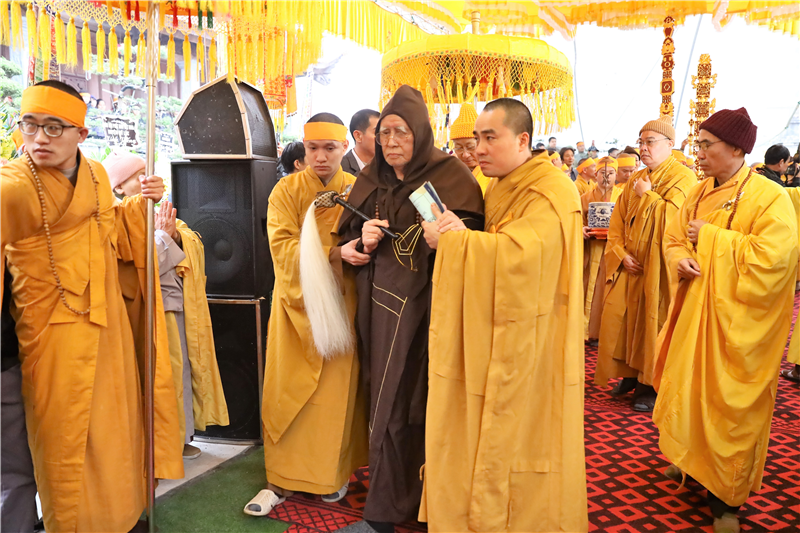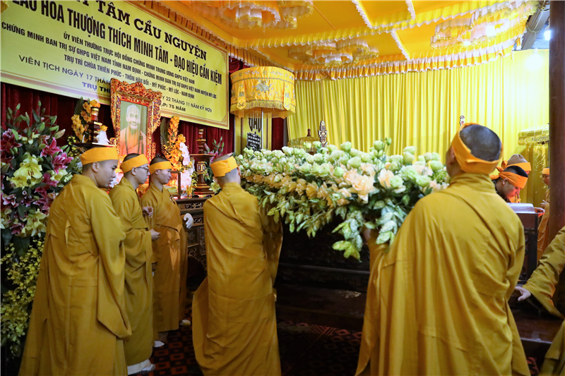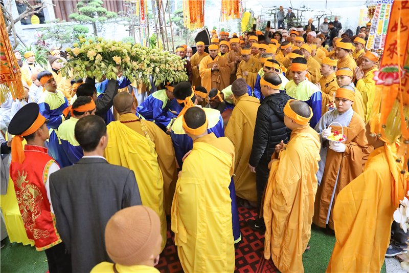 Sau đó, Trưởng lão HT.Thích Trí Tịnh cung tuyên pháp ngữ phất trần, Trưởng lão HT. Thích Thanh Đàm sái tịnh tiến hành di quan Trưởng lão rời Giác linh đường nhập bảo tháp tại khuôn viên Tổ đình Thiên Phúc.
