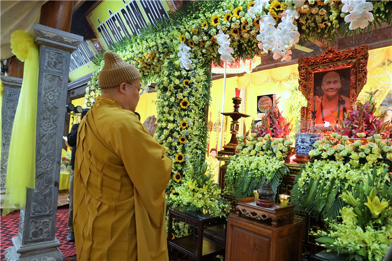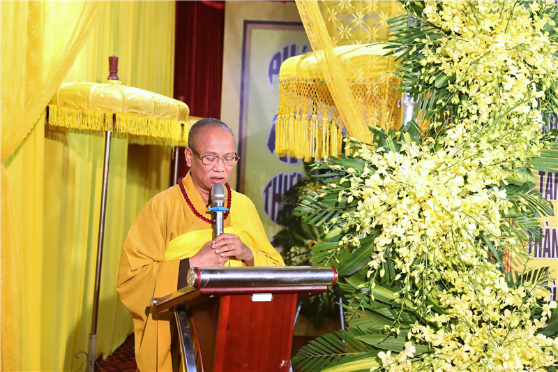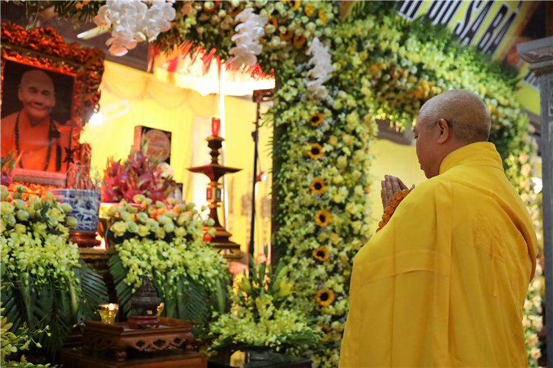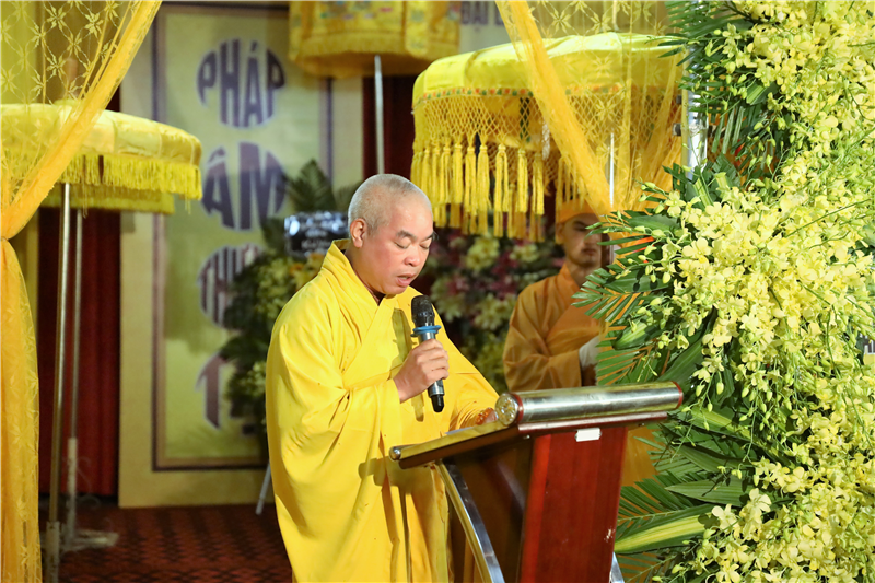 Tại buổi lễ, ĐĐ Thích Thanh Lê, thay mặt môn đồ pháp quyến dâng lời cảm niệm Ân sư.