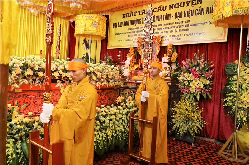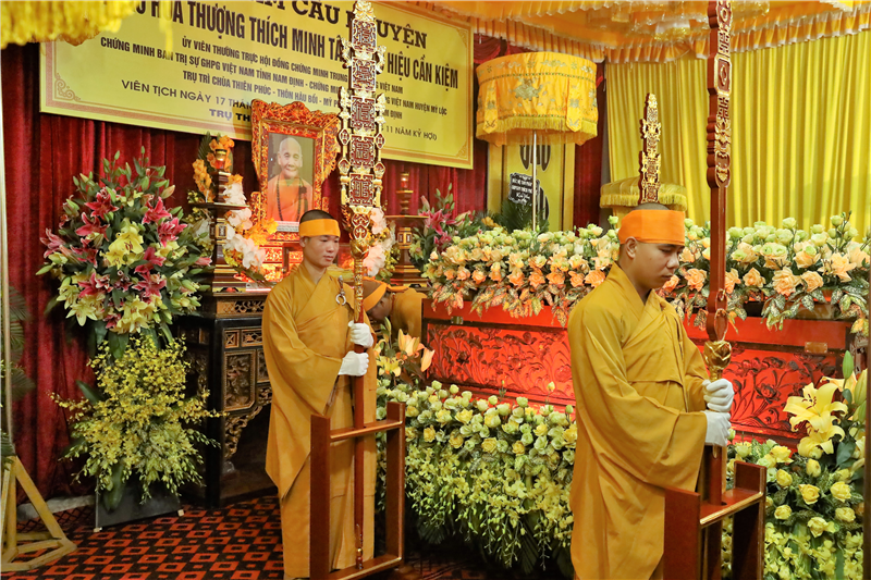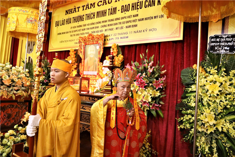 Theo đó, Hòa thượng Phó Chủ tịch TT HĐTS đã nhắc lại những nét nổi bật trong hành trạng của cố Trưởng lão Hòa thượng và công đức to lớn mà ngài đã đóng góp cho Giáo hội Trung ương, tỉnh Nam Định và huyện Mỹ Lộc. Những hạnh nguyện của ngài sẽ được duy trì trong tâm thức của các pháp lữ, Tăng Ni, môn đồ pháp quyến, trong hướng phụng sự cho sự phát triển của ngôi nhà chung Phật giáo Việt Nam ngày càng xương minh.