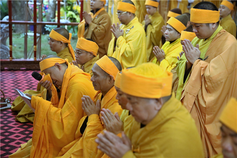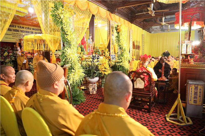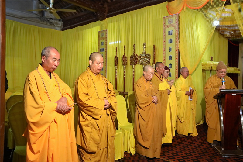Truy tán Trưởng lão Hòa thượng Thích Minh Tâm- Đạo hiệu Cần Kiệm giác linh, HT.Thích Thanh Nhiễu đã đại diện HĐCM, HĐTS GHPGVN đối trước Giác linh đài đọc lời tưởng niệm.