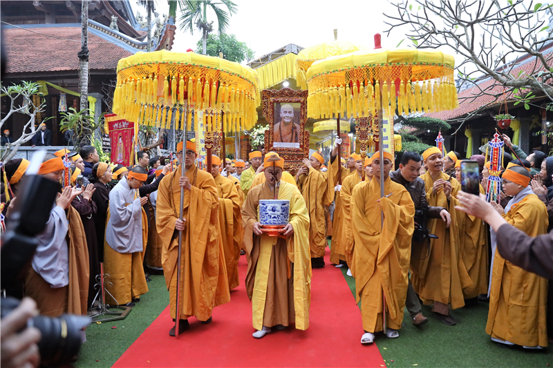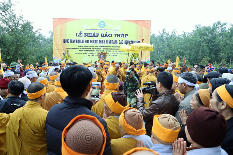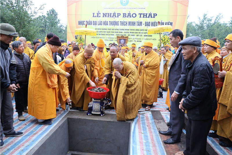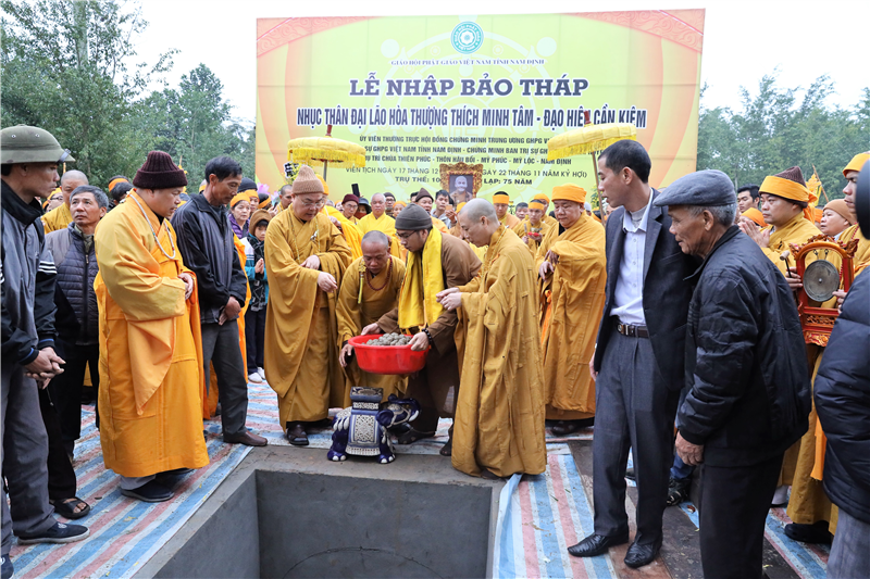 Sáng nay, ngày 22-12-2019 ( nhằm ngày 27 tháng 11 năm Kỷ hợi) chư Tôn giáo Phẩm, lãnh đạo các cấp quang lâm Tổ đình Thiên Phúc, xã Mỹ Phúc, huyện Mỹ Lộc, tỉnh Nam Định làm lễ truy niệm và cung nghinh nhục thân cố Trưởng lão Hòa thượng Thích Minh Tâm- Đạo hiệu Cần Kiệm giác linh nhập bảo tháp.