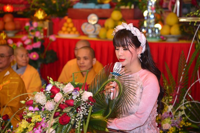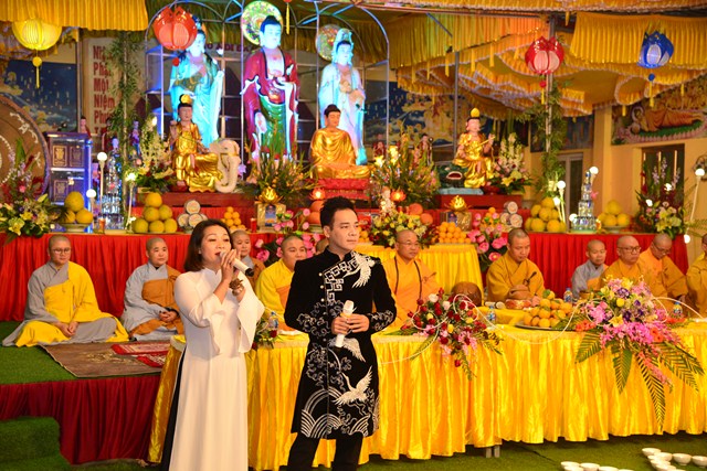 Sau phần niệm Phật cầu gia bị, tuyên bố lý do và giới thiệu chương trình, trong không khí trang nghiêm, thành kính, chương trình bắt đầu với phần văn nghệ chào mừng với chùm ca khúc ca ngợi công hạnh của Đức Phật A Di Đà qua sự thể hiện của ca sỹ Phật tử Tâm Nguyện, ca sỹ Phật tử Thúy Nga và ca nương kỷ lục gia nhí Tú Thanh…