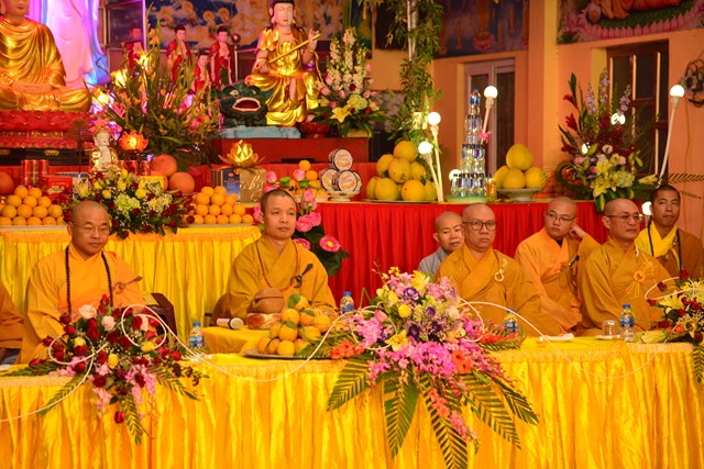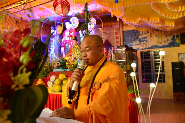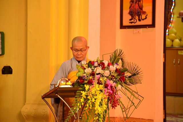 Nhân dịp này, thượng tọa Thích Minh Quang đã ban đạo từ nói lên nguồn gốc lịch sử, công hạnh của Đức Phật A Di Đà, cảnh giới Tây Phương Cực Lạc và pháp môn niệm Phật thù thắng, dễ tu mà cũng dễ chứng đắc, bất kỳ ai cũng có thể tu trì pháp môn này, không phân biệt giàu nghèo hay sang hèn…Ngoài ra, Thượng tọa cũng sách tấn các Phật tử phải siêng làm các việc lành, nói lời hay, làm việc thiện, lìa xa các điều xấu ác, giữ tâm thiện thì tâm sẽ được bình an; “ Hôm nay chúng ta đốt ngọn đèn cũng chính là để soi rọi tâm mình, xua đi tăm tối, lan tỏa đến tất cả mọi người xung quanh, tiến tới giác ngộ, giải thoát.” Dó đó, mỗi chúng ta cần phải cố gắng tu học và phát nguyện được sinh về thế giới Tây Phương Cực Lạc của Đức Phật A Di Đà.