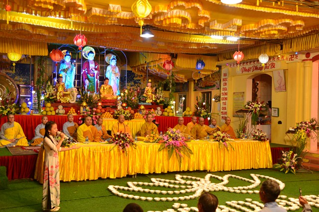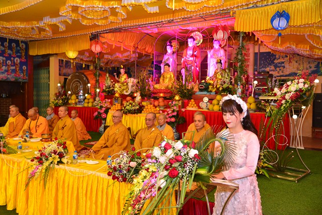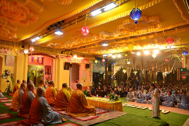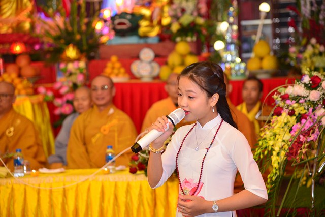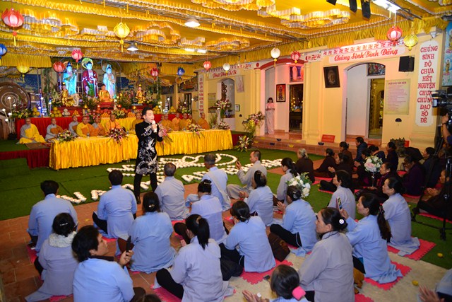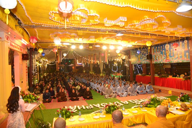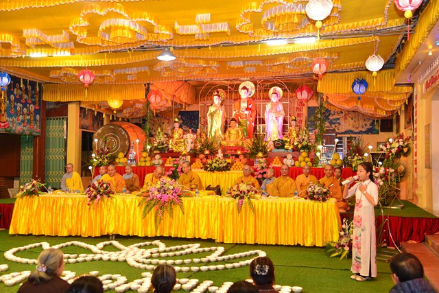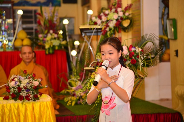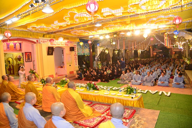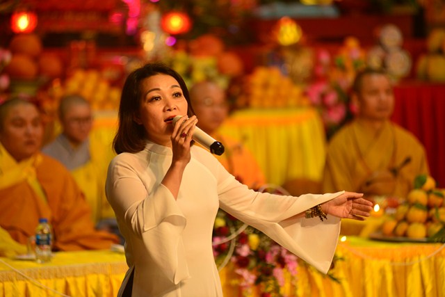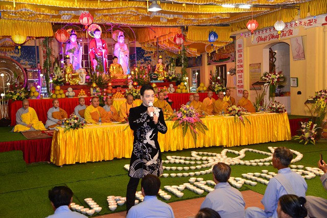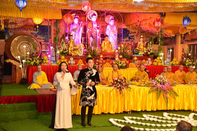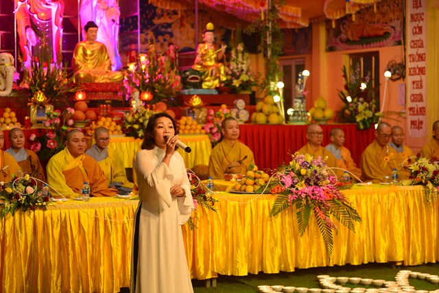 Sau phần niệm Phật cầu gia bị, tuyên bố lý do và giới thiệu chương trình, trong không khí trang nghiêm, thành kính, chương trình bắt đầu với phần văn nghệ chào mừng với chùm ca khúc ca ngợi công hạnh của Đức Phật A Di Đà qua sự thể hiện của ca sỹ Phật tử Tâm Nguyện, ca sỹ Phật tử Thúy Nga và ca nương kỷ lục gia nhí Tú Thanh…