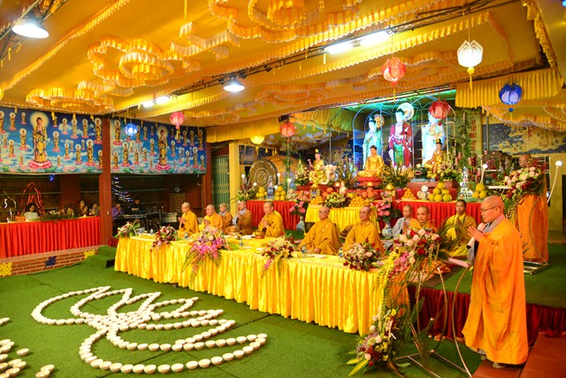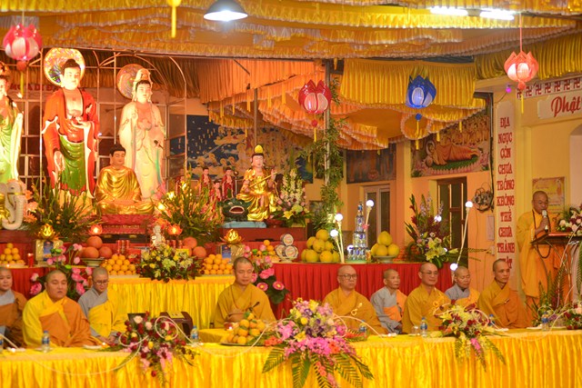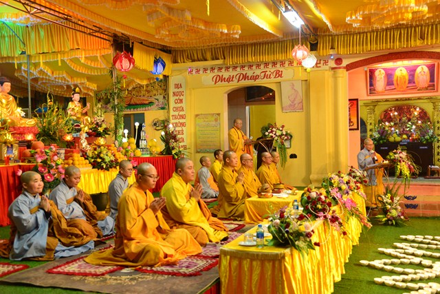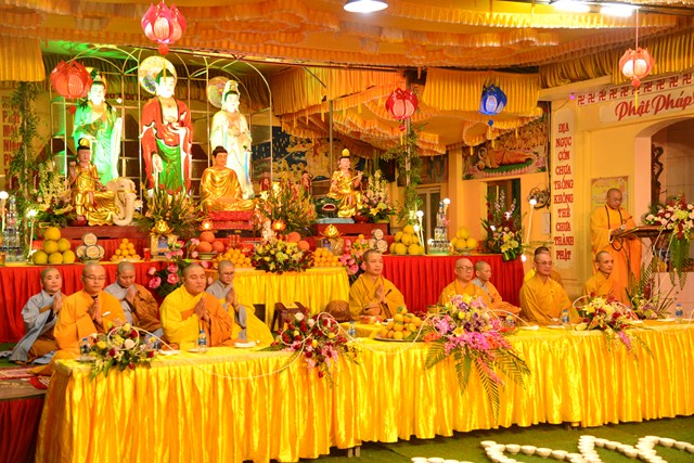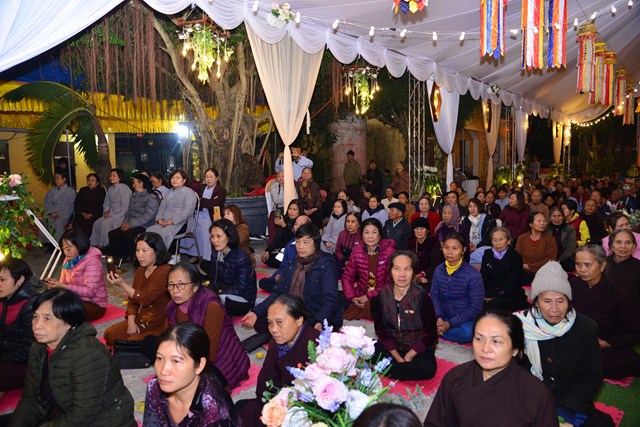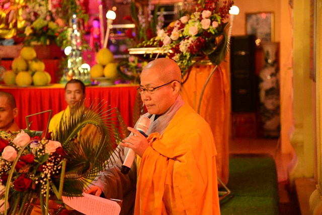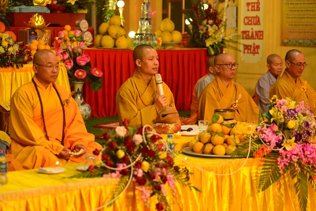 Nhân dịp này, thượng tọa Thích Minh Quang đã ban đạo từ nói lên nguồn gốc lịch sử, công hạnh của Đức Phật A Di Đà, cảnh giới Tây Phương Cực Lạc và pháp môn niệm Phật thù thắng, dễ tu mà cũng dễ chứng đắc, bất kỳ ai cũng có thể tu trì pháp môn này, không phân biệt giàu nghèo hay sang hèn…Ngoài ra, Thượng tọa cũng sách tấn các Phật tử phải siêng làm các việc lành, nói lời hay, làm việc thiện, lìa xa các điều xấu ác, giữ tâm thiện thì tâm sẽ được bình an; “ Hôm nay chúng ta đốt ngọn đèn cũng chính là để soi rọi tâm mình, xua đi tăm tối, lan tỏa đến tất cả mọi người xung quanh, tiến tới giác ngộ, giải thoát.” Dó đó, mỗi chúng ta cần phải cố gắng tu học và phát nguyện được sinh về thế giới Tây Phương Cực Lạc của Đức Phật A Di Đà.