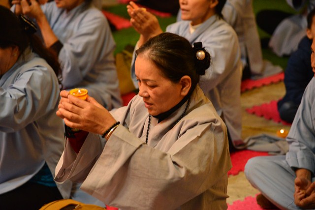 Phật tử trang nghiêm thành kính niệm danh hiệu Phật A Di Đà