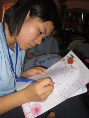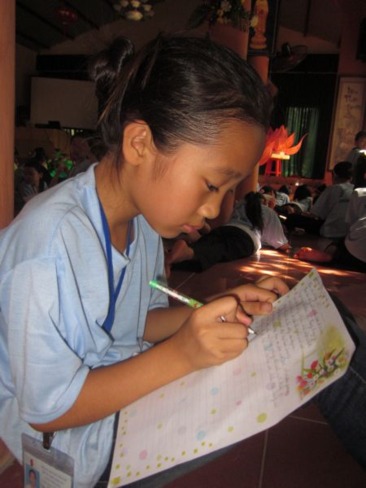 Sau giờ nghĩ trưa, các khóa sinh được sinh hoạt và viết cảm nhận. Những Tâm sự được các bạn bộc bạch hết sức thơ ngây và tình cảm. Nhiều bạn cho biết khi mới đăng ký tham gia đều nghĩ rằng vào chùa chắc chỉ là tụng kinh, niệm Phật mà thôi, không ngờ vào đây lại vui và nhiều chương trình đến thế, ngoài tụng kinh, nghe pháp, học giáo lý và ngồi Thiền ra, chúng con còn được học rất nhiều thứ về đạo đức và các kỹ năng sống như cắm hoa, nấu ăn chay, cách chi tiêu hợp lý, cách rèn luyện sức khỏe, kỹ năng dẫn chương trình, …. Một khóa sinh tên Dương chia sẻ: khi mới vào tu vì chưa quen thức dậy sớm, tụng kinh nồi Thiền lâu nên con cảm thấy chán, chỉ mon cho đến ngày về, nhưng qua 6 này tu con cảm thấy rất khác, thấy mình thay đổi nhiều.