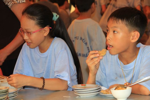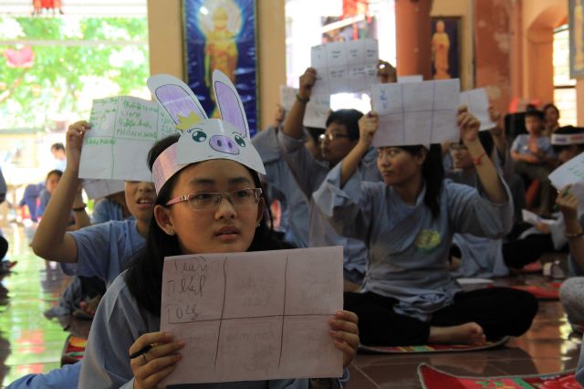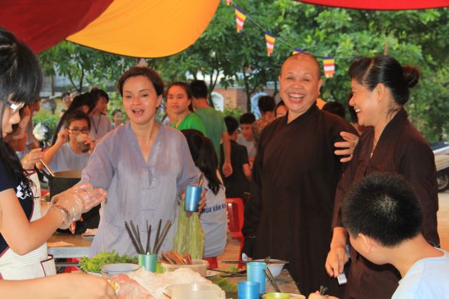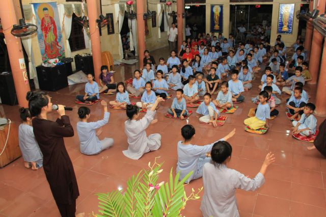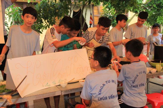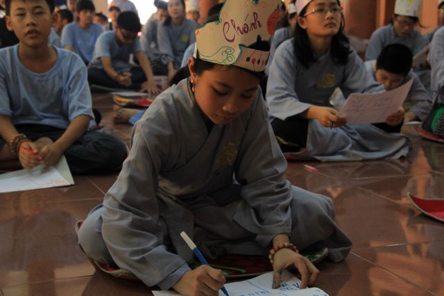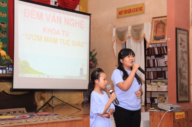 Buổi chiều, khoá tu tổ chức “phiên chợ Ươm mầm tuệ giác” để các bạn liên hoan, đồng thời tập cách sắp xếp, bán buôn và chi tiêu cho hợp lý.